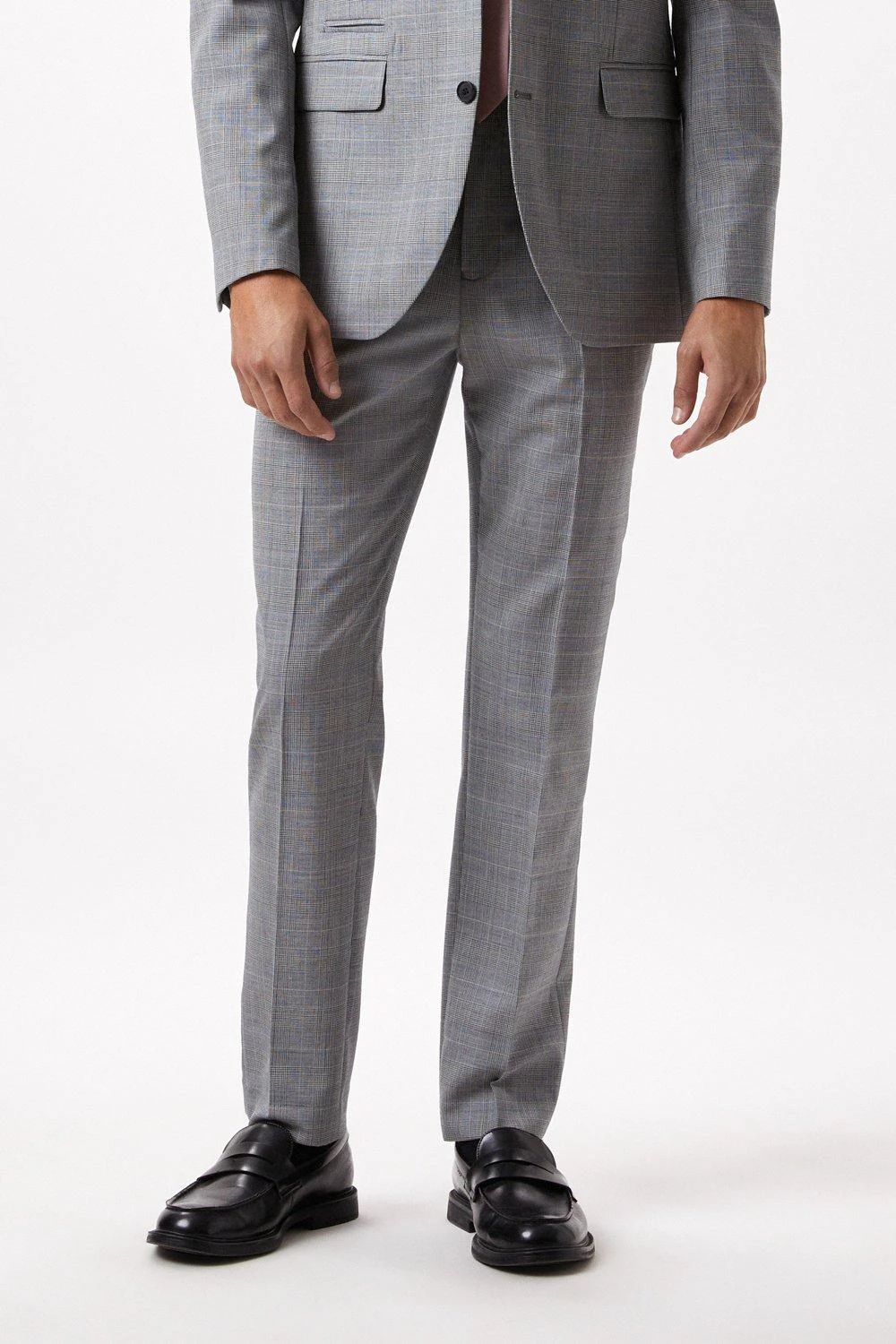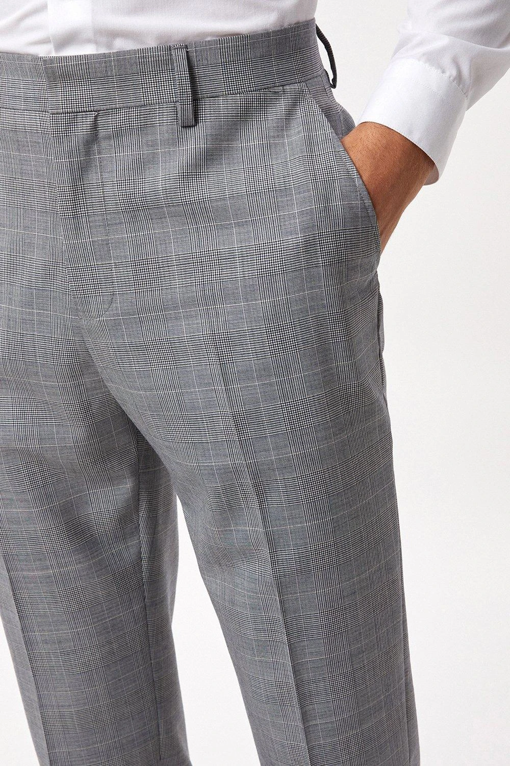 Burton Slim Fit Grey Check British Wool Suit Trousers