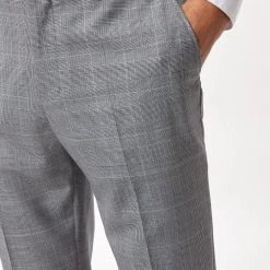 Reigniting our historic partnership with Alfred Brown, 1915, we have utilised our combined 224 years of expertise to develop 100% British wool suits; inspired by our heritage of tailoring we have designed this commemorative collection in modern fits and colours with limited edition branding and lining.Style: Slim Fit Grey Check Suit TrousersLength: Approx. 78cmFit: SlimIdeal for: SmartDesign: Belt Loops, Pockets, Zip And Hook And Bar Fastening