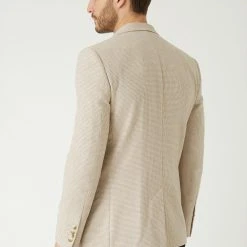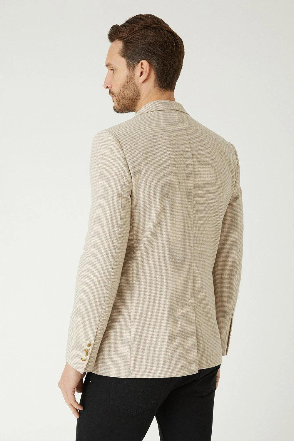 Burton Slim Fit Half Lined Neutral Dogtooth Blazer