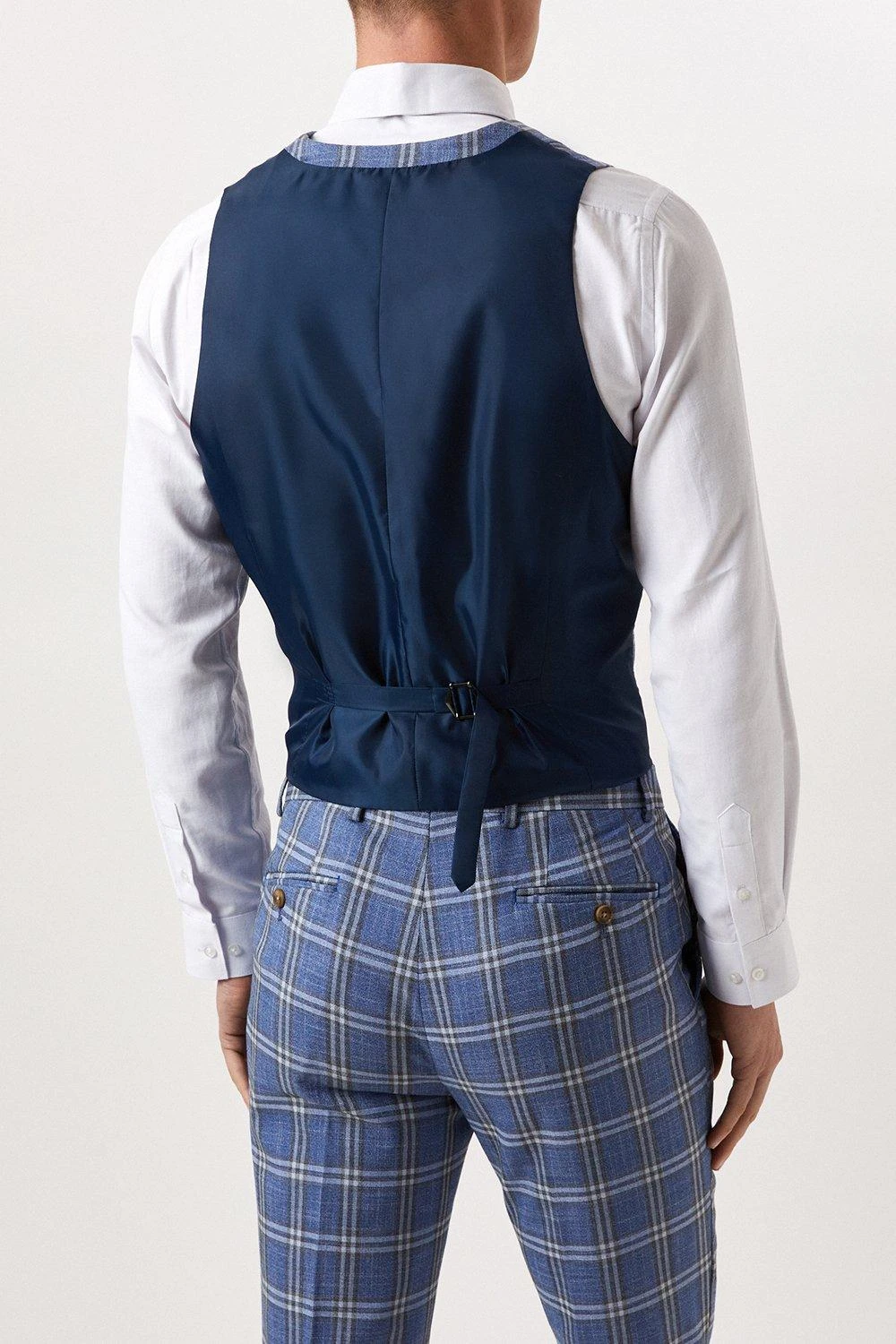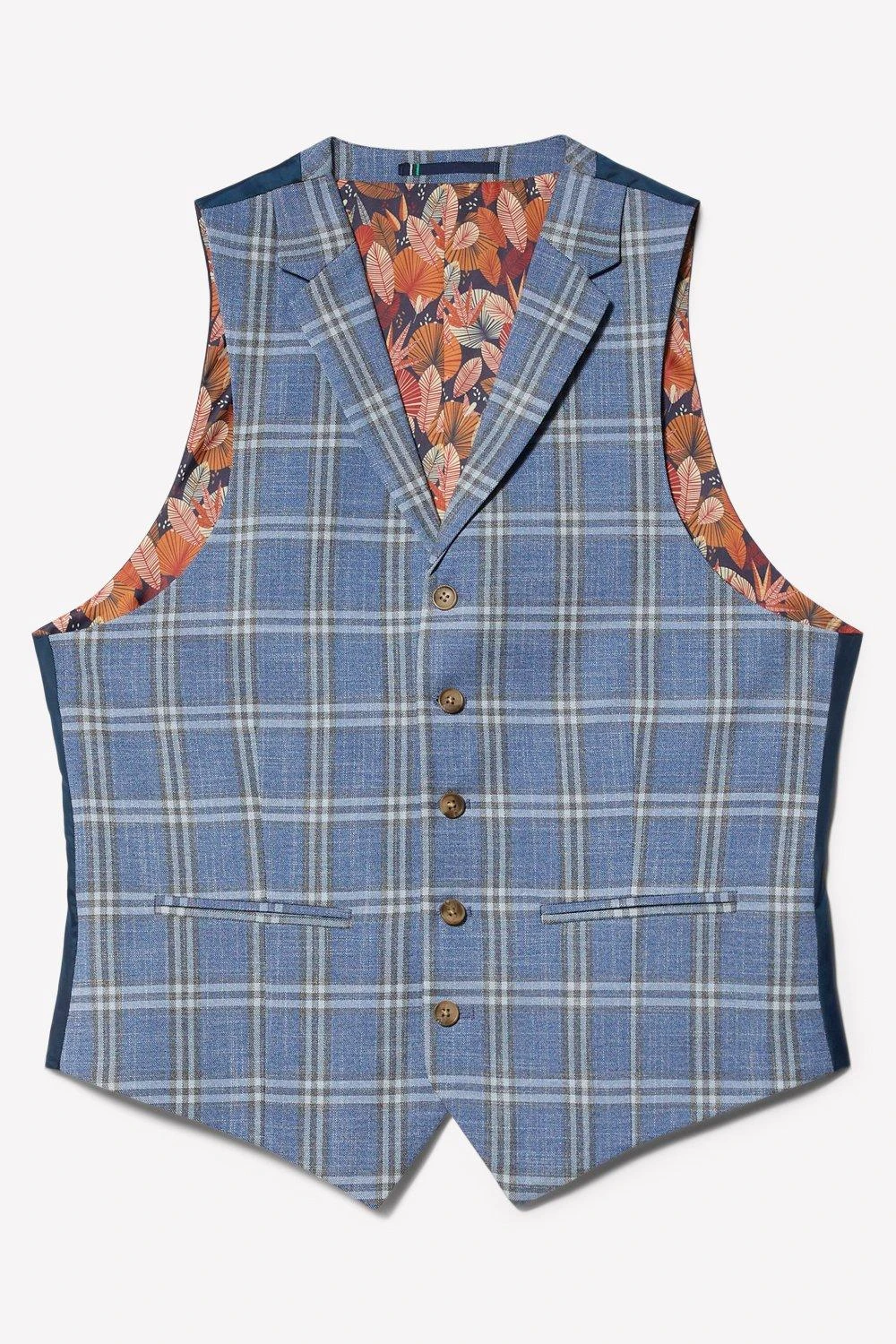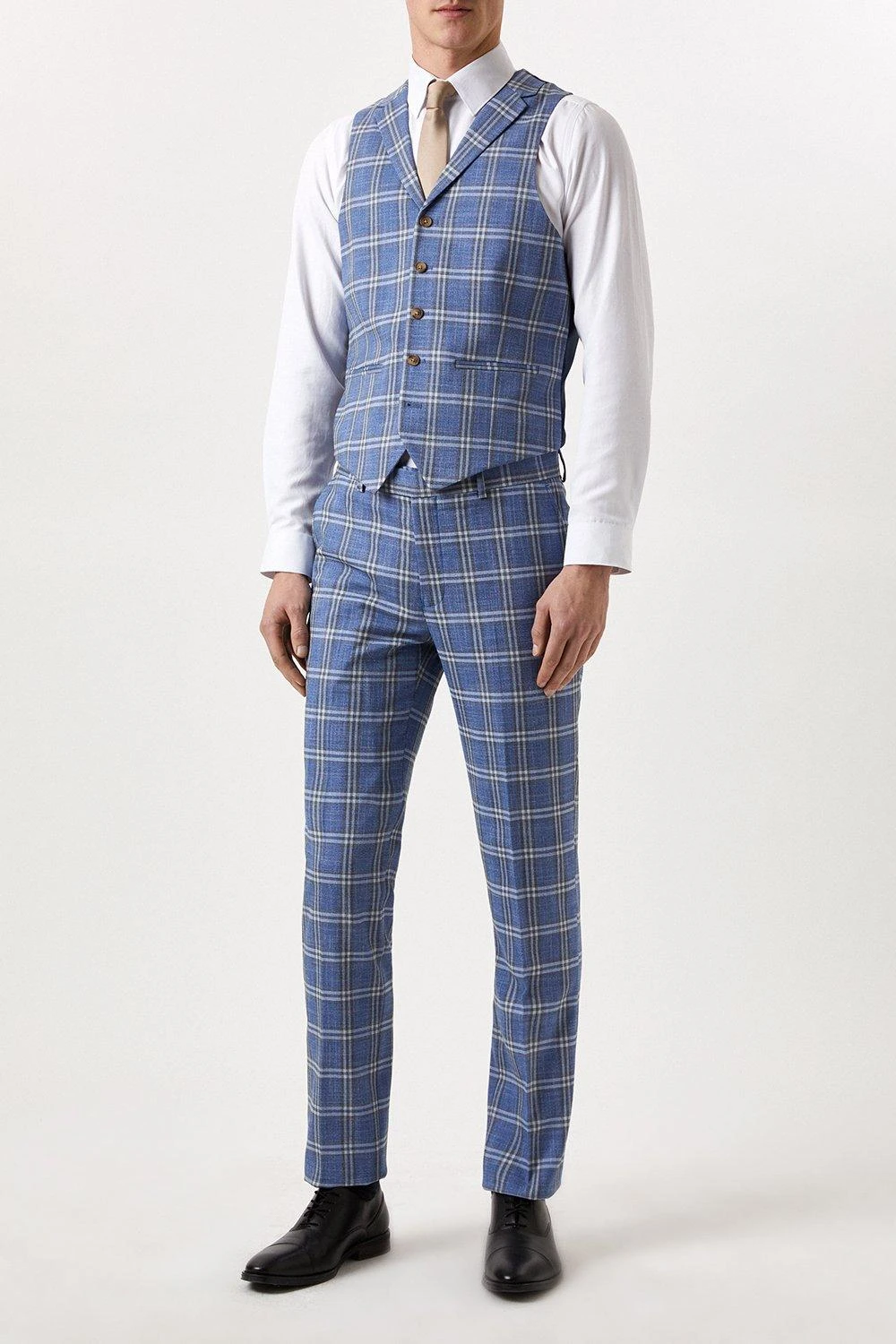 Established back in 1904, we�ve been providing you with great British style and timeless tailoring ever since. Featuring single and double breasted styles as well as classic and modern fits and patterns, our collection of mens suits will keep you on-trend with sharp tailoring, from season to season.Whether you�re suiting up for important meetings or you�ve got a special occasion coming up, we�ve got you sorted.Style: Slim Fit Light Blue Check Suit WaistcoatLength: Approx. 59cmFit: SlimIdeal for: SmartDesign: Check Fabric, Adjustable Back Strap