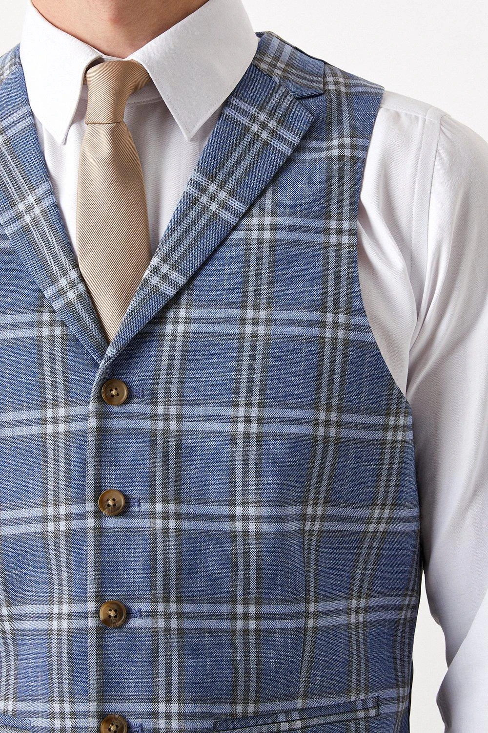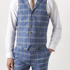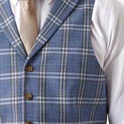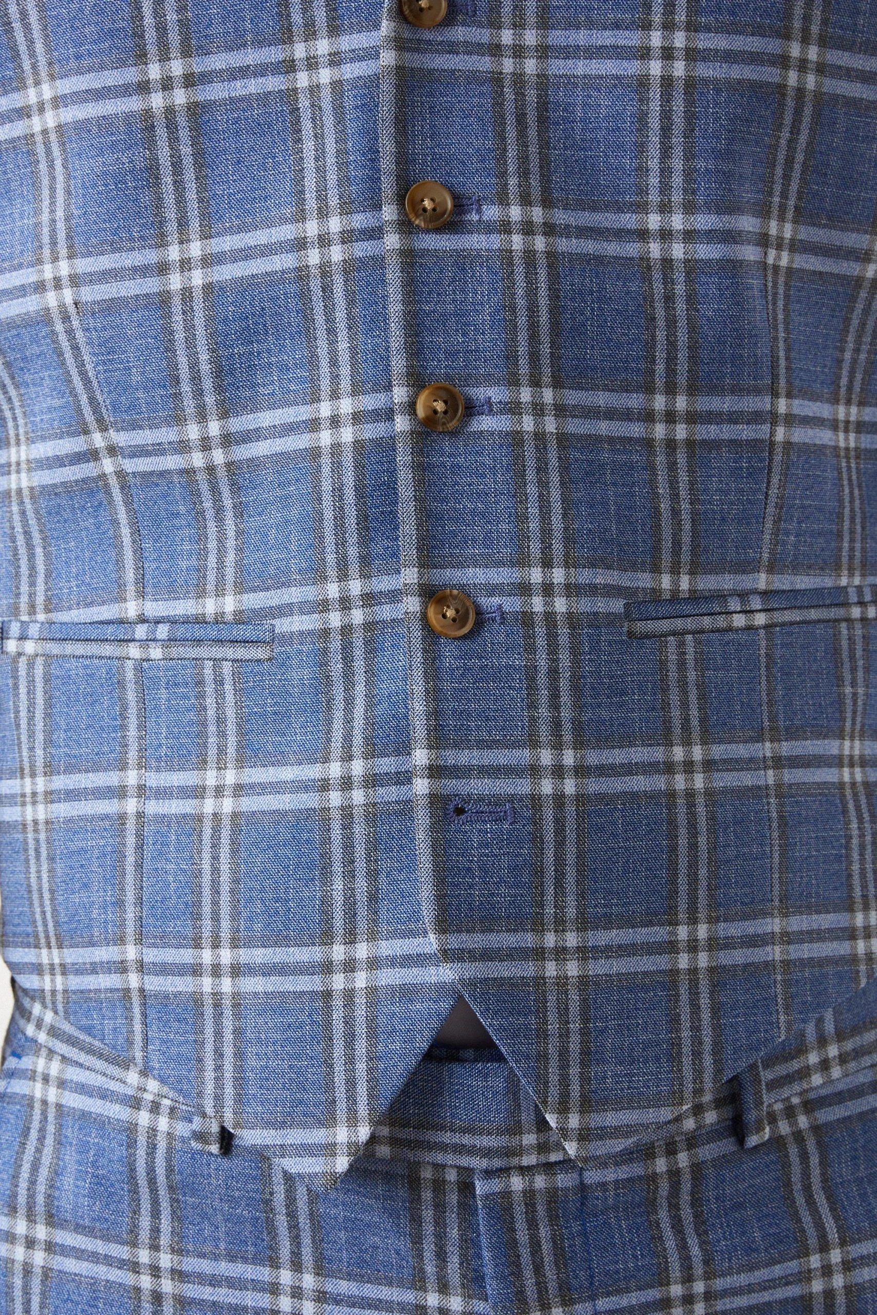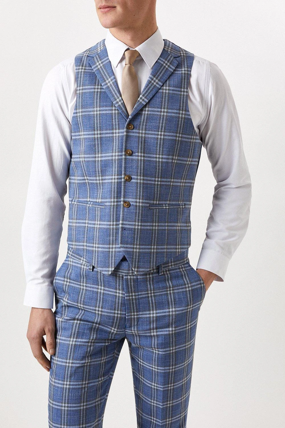 Established back in 1904, we�ve been providing you with great British style and timeless tailoring ever since. Featuring single and double breasted styles as well as classic and modern fits and patterns, our collection of mens suits will keep you on-trend with sharp tailoring, from season to season.Whether you�re suiting up for important meetings or you�ve got a special occasion coming up, we�ve got you sorted.Style: Slim Fit Light Blue Check Suit WaistcoatLength: Approx. 59cmFit: SlimIdeal for: SmartDesign: Check Fabric, Adjustable Back Strap