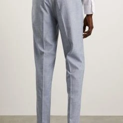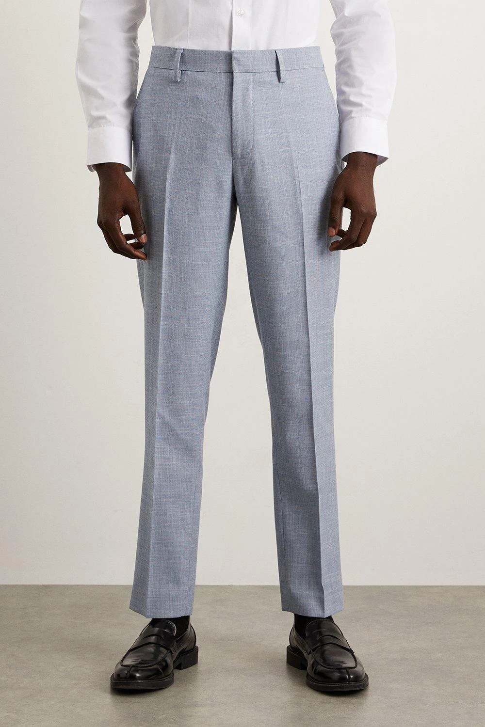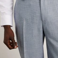 Established back in 1904, we’ve been providing you with great British style and timeless tailoring ever since. Featuring single and double breasted styles as well as classic and modern fits and patterns, our collection of mens suits will keep you on-trend with sharp tailoring, from season to season. Whether you’re suiting up for important meetings or you’ve got a special occasion coming up, we’ve got you sorted. Style: Slim Fit Light Blue Puppytooth Suit Trousers. Ideal for: Smart. Fit: Slim. Design: Single Button. Model wears size UK 10 and is 5′ 9″ tall.