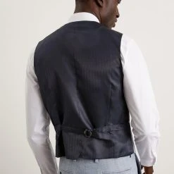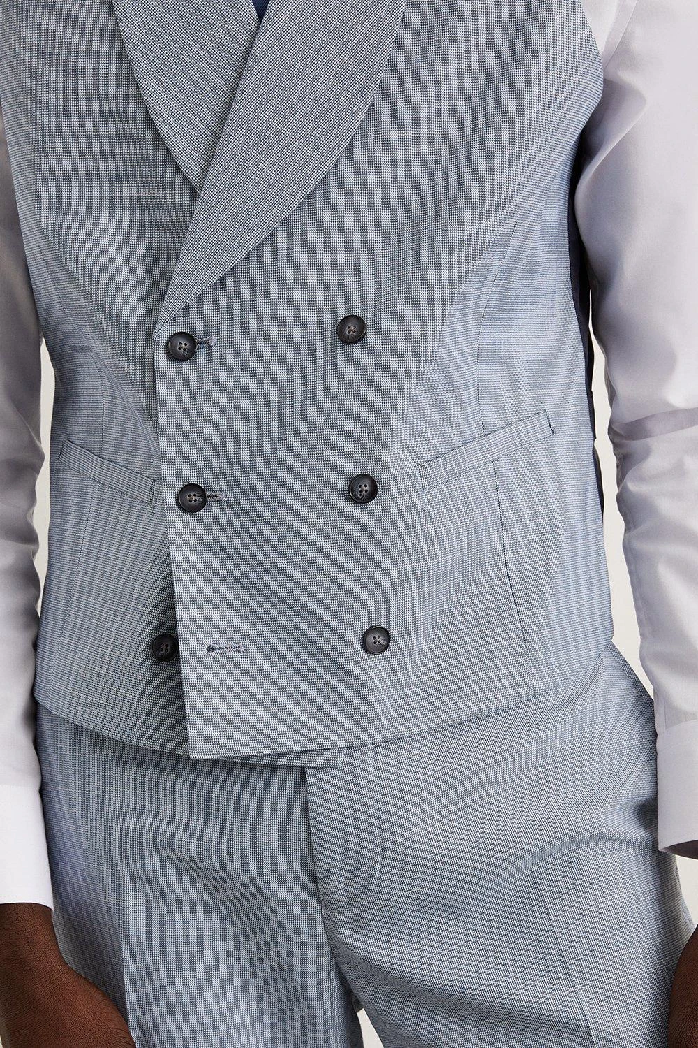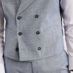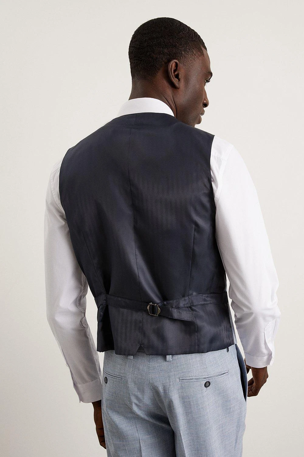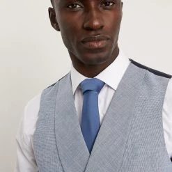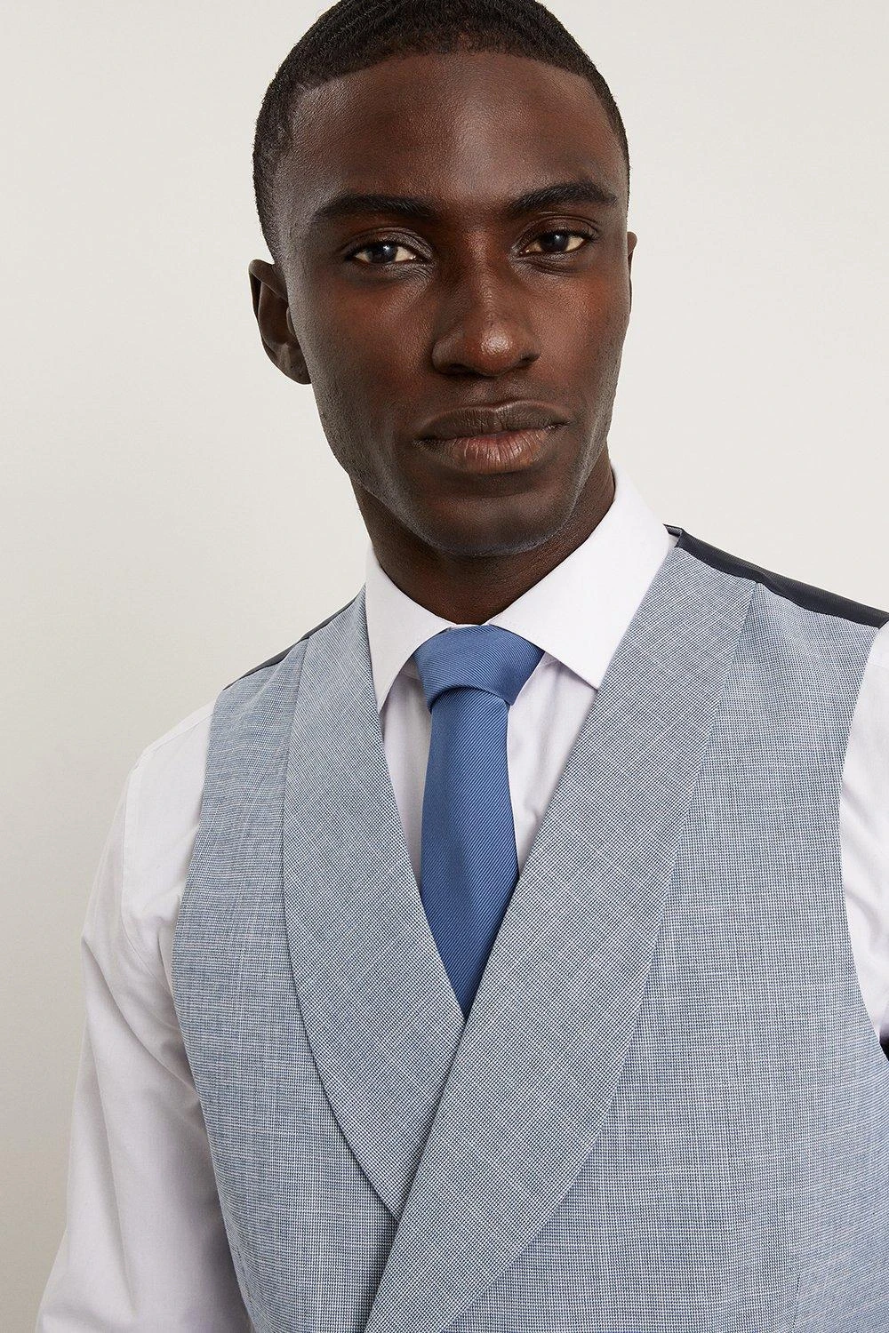 Established back in 1904, we’ve been providing you with great British style and timeless tailoring ever since. Featuring single and double breasted styles as well as classic and modern fits and patterns, our collection of mens suits will keep you on-trend with sharp tailoring, from season to season. Whether you’re suiting up for important meetings or you’ve got a special occasion coming up, we’ve got you sorted. Style: Slim Fit Light Blue Puppytooth Waistcoat. Ideal for: Smart. Fit: Slim. Design: Single Button. Model wears size UK 10 and is 5′ 9″ tall.