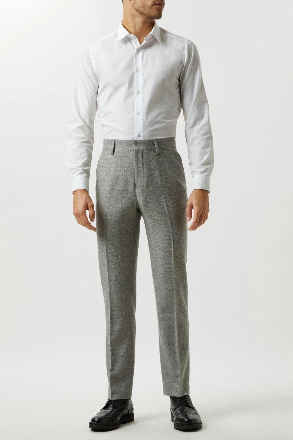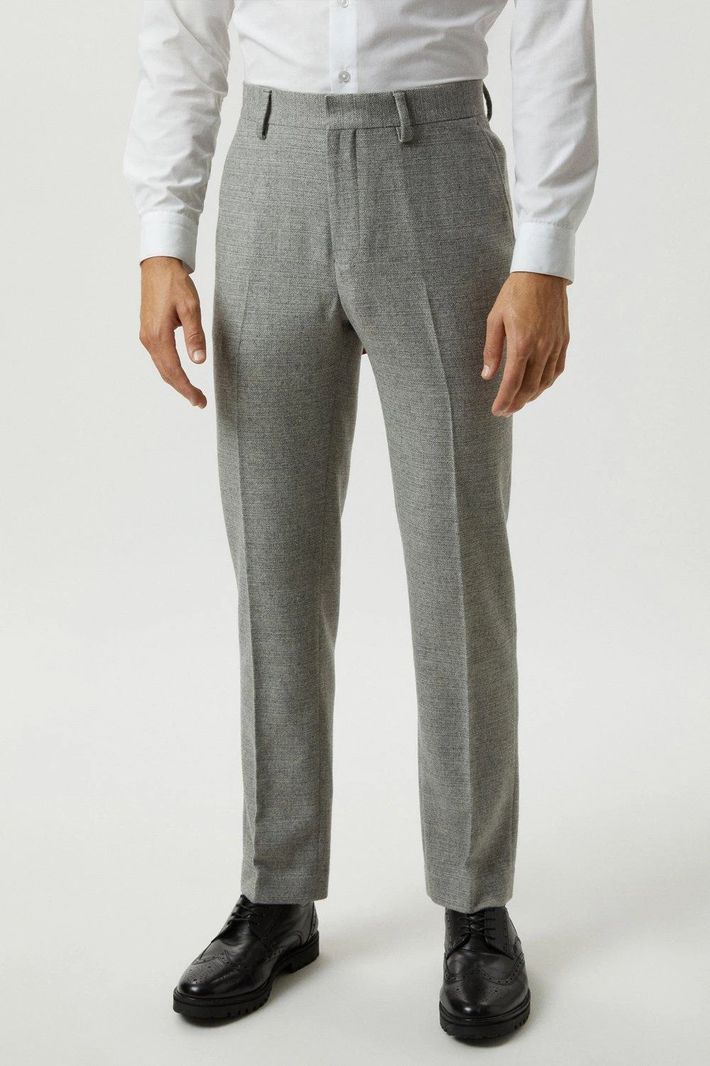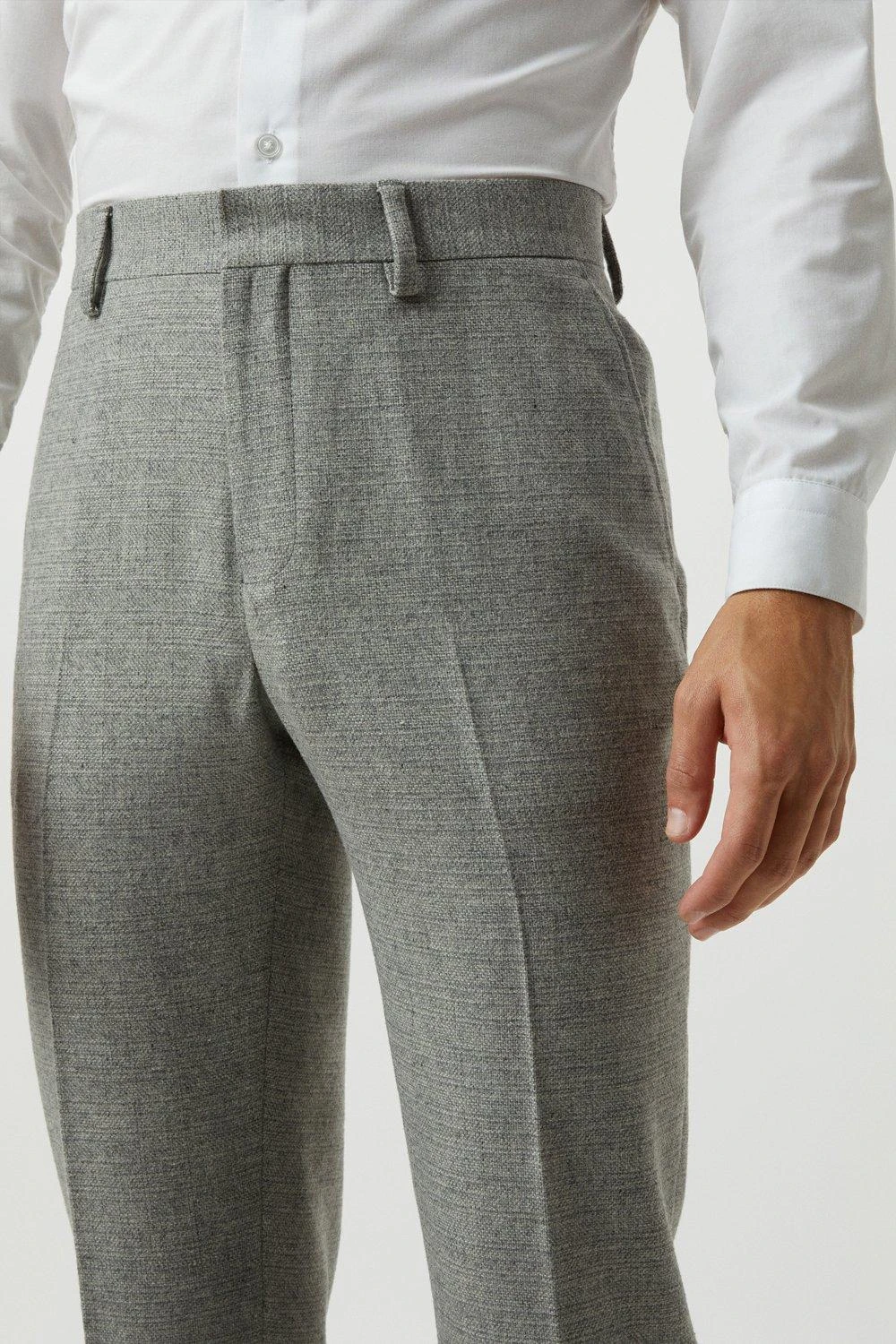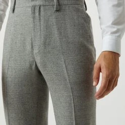 Burton Slim Fit Light Grey Crosshatch Tweed Suit Trousers
