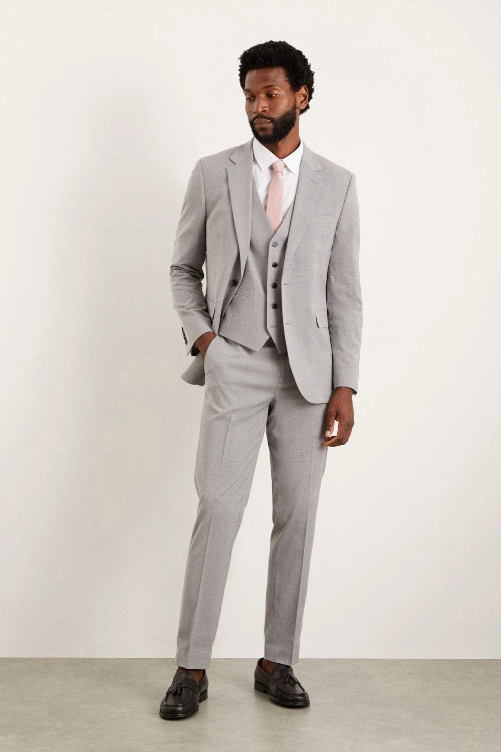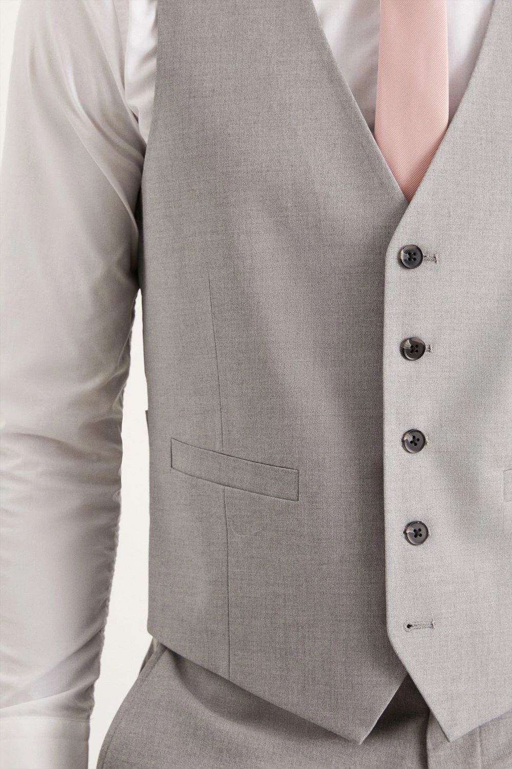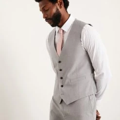 Established back in 1904, we’ve been providing you with great British style and timeless tailoring ever since. Featuring single and double breasted styles as well as classic and modern fits and patterns, our collection of mens suits will keep you on-trend with sharp tailoring, from season to season. Whether you’re suiting up for important meetings or you’ve got a special occasion coming up, we’ve got you sorted. Style: Slim Fit Light Grey Essential Waistcoat. Ideal for: Smart. Fit: Slim. Design: Plain. Model wears size UK 10 and is 5′ 9″ tall. This garment is READY FOR THE FUTURE.Recycled fibres can be used for a number of materials including polyester, cotton and acrylic. They are a more sustainable alternative, as they take less energy, land and water to make than virgin fibres, and are often derived from products that would otherwise have gone to wasteFind out more about our sustainability guidelines and goals.