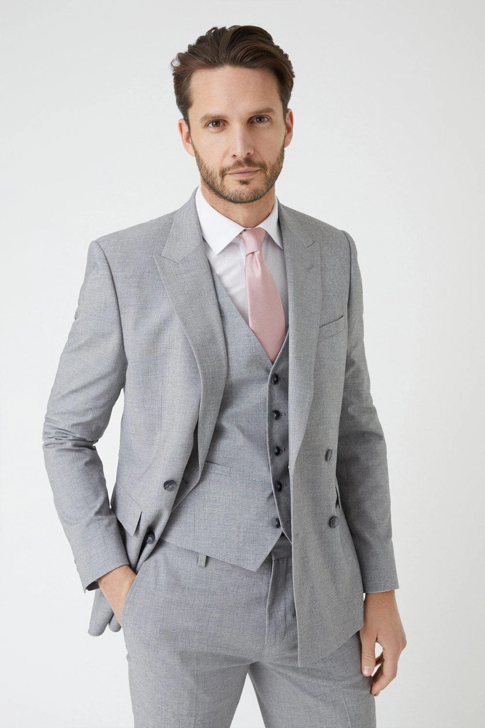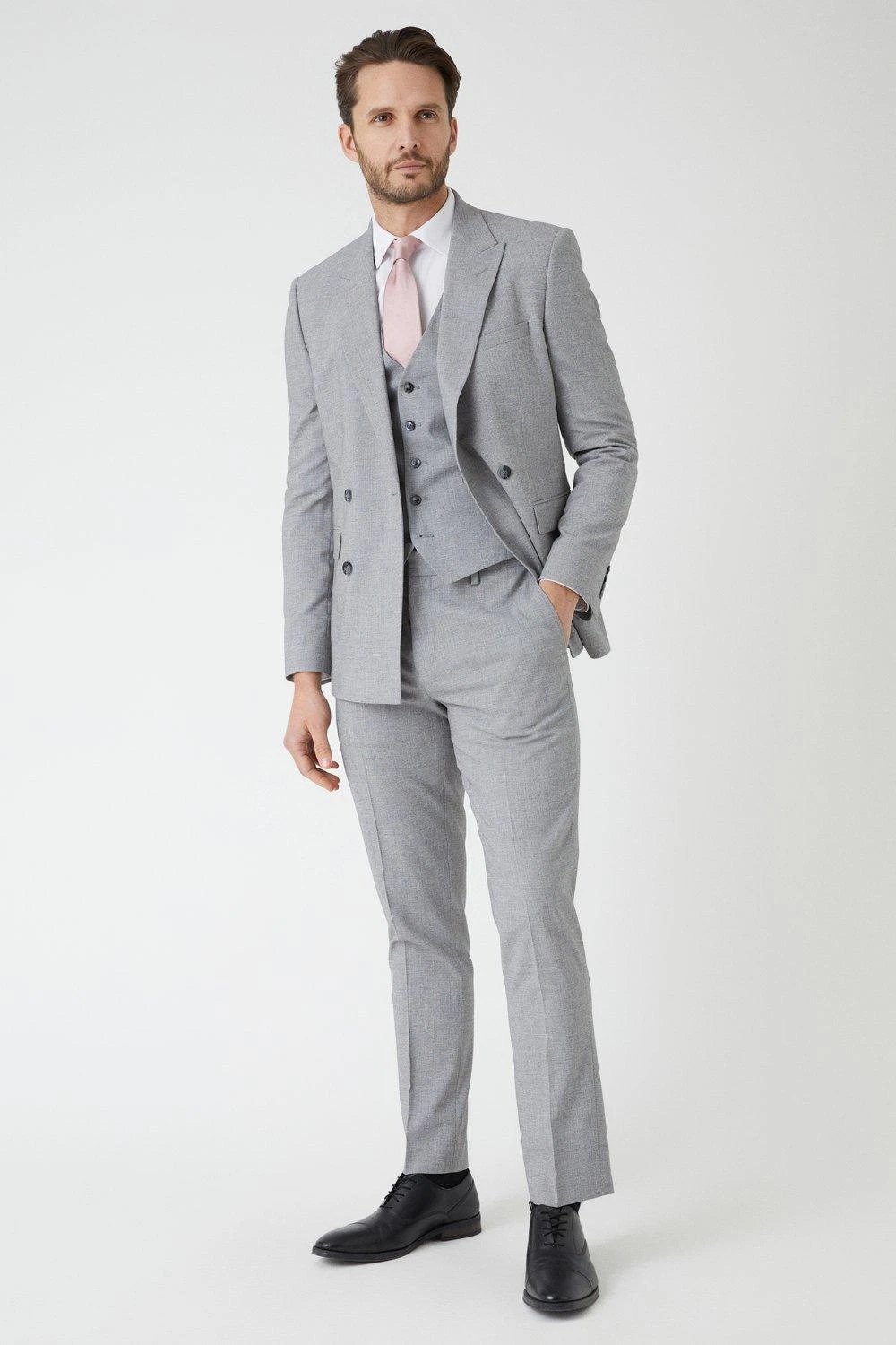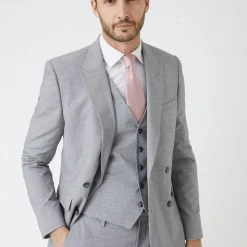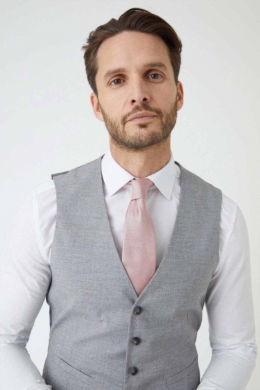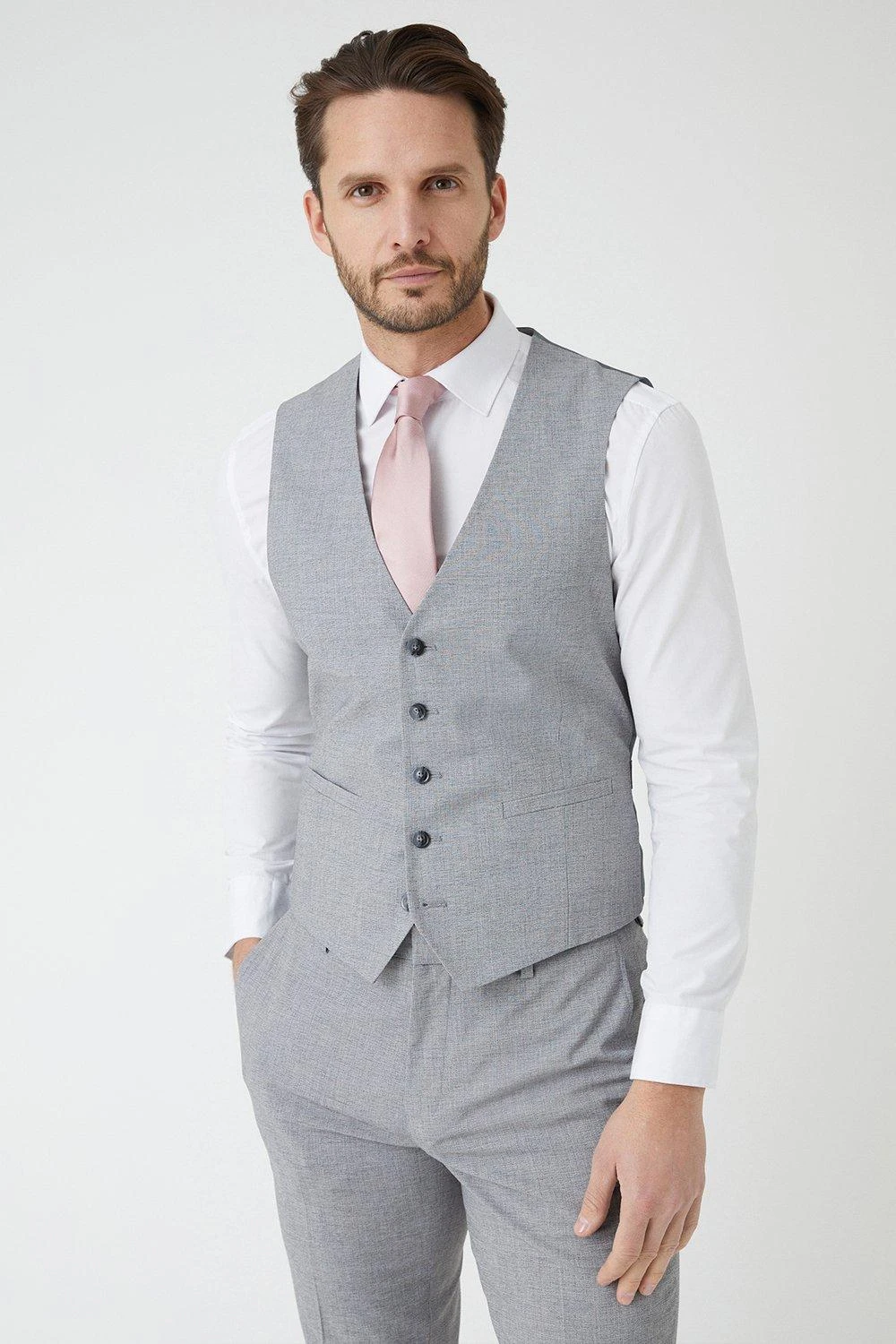 Established back in 1904, we’ve been providing you with great British style and timeless tailoring ever since. Featuring single and double breasted styles as well as classic and modern fits and patterns, our collection of mens suits will keep you on-trend with sharp tailoring, from season to season. Whether you’re suiting up for important meetings or you’ve got a special occasion coming up, we’ve got you sorted. Style: Slim Fit Light Grey Textured Waistcoat. Ideal for: Smart. Fit: Slim. Design: Single Button. Model wears size UK 10 and is 5′ 9″ tall.