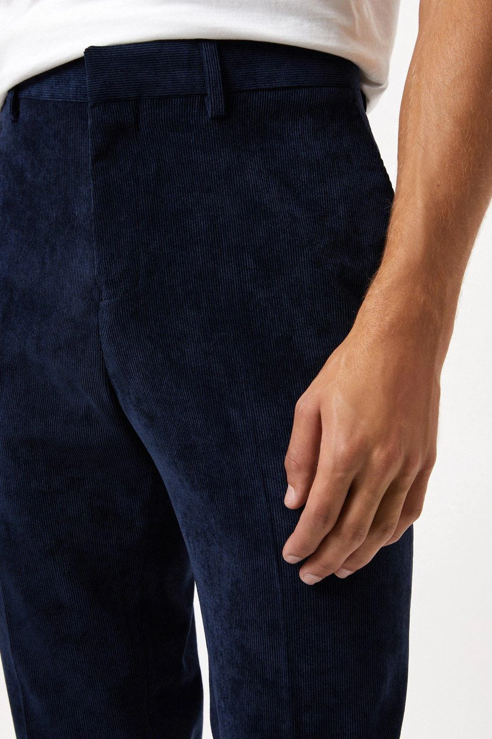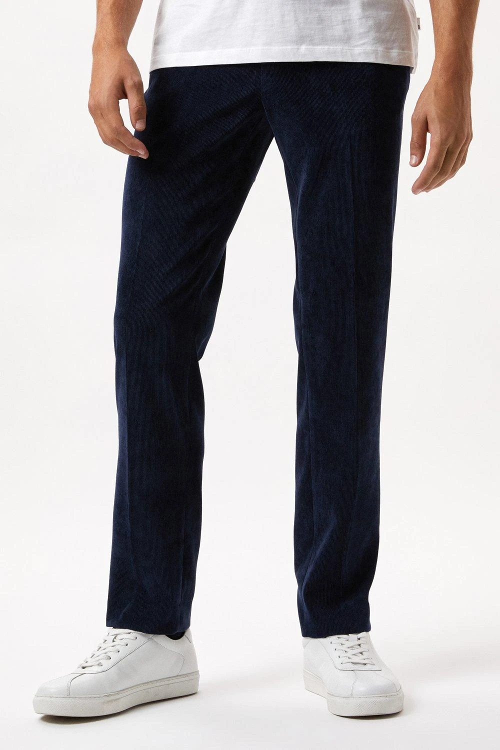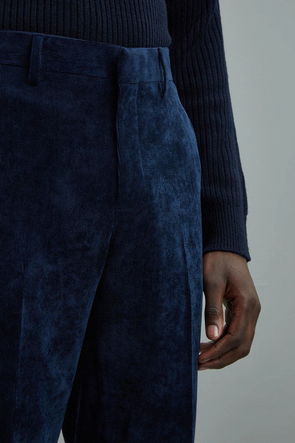 Part of our main range of tailoring, this suit trouser comes in a navy corduroy design and a perfect slim fit. Featuring belt loops and functional side pockets. Model is 6 foot 1 and is wearing size 34R.
