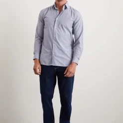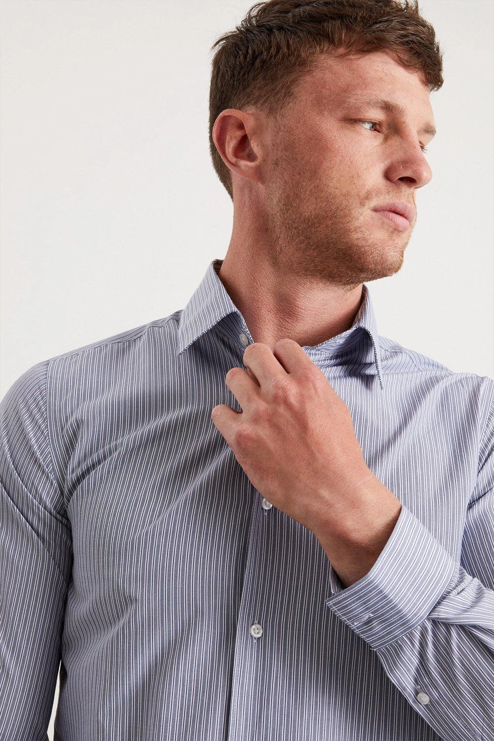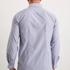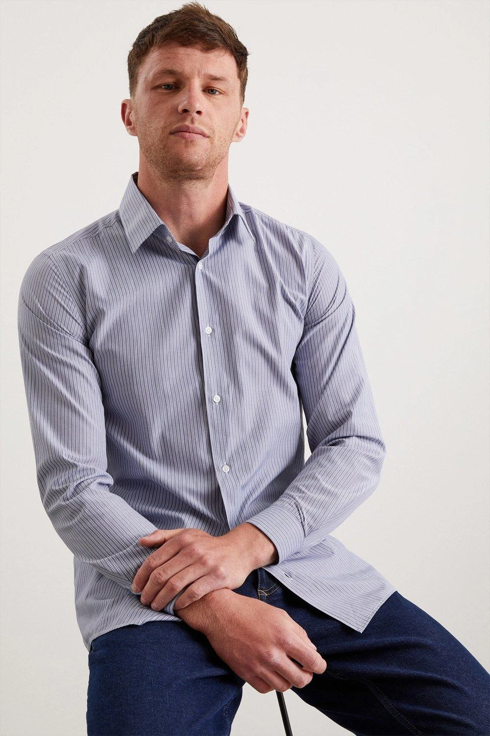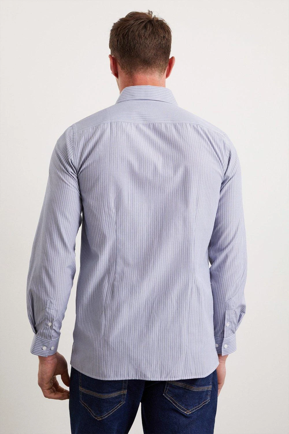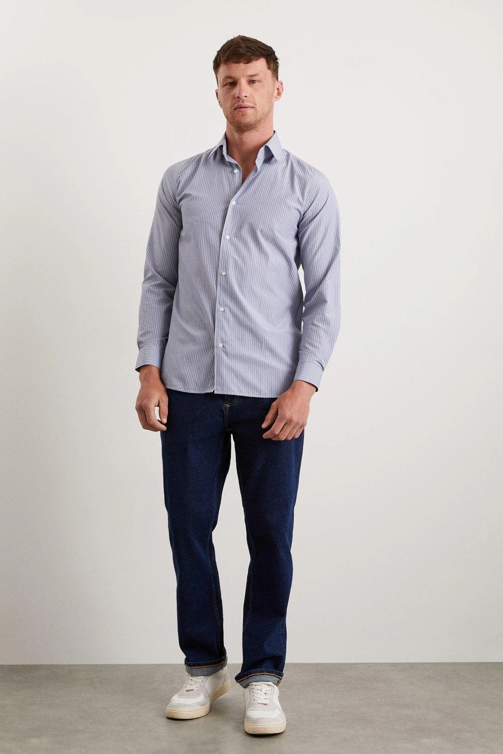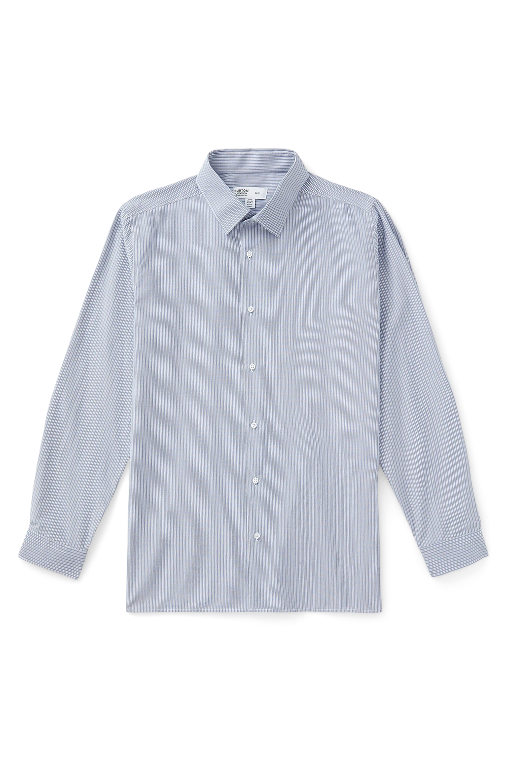 Burton Slim Fit Navy Dobby Stripe Shirt