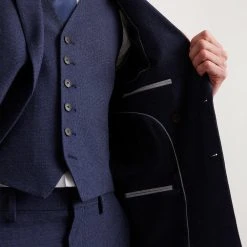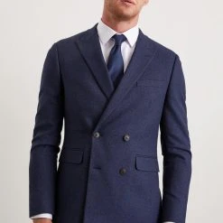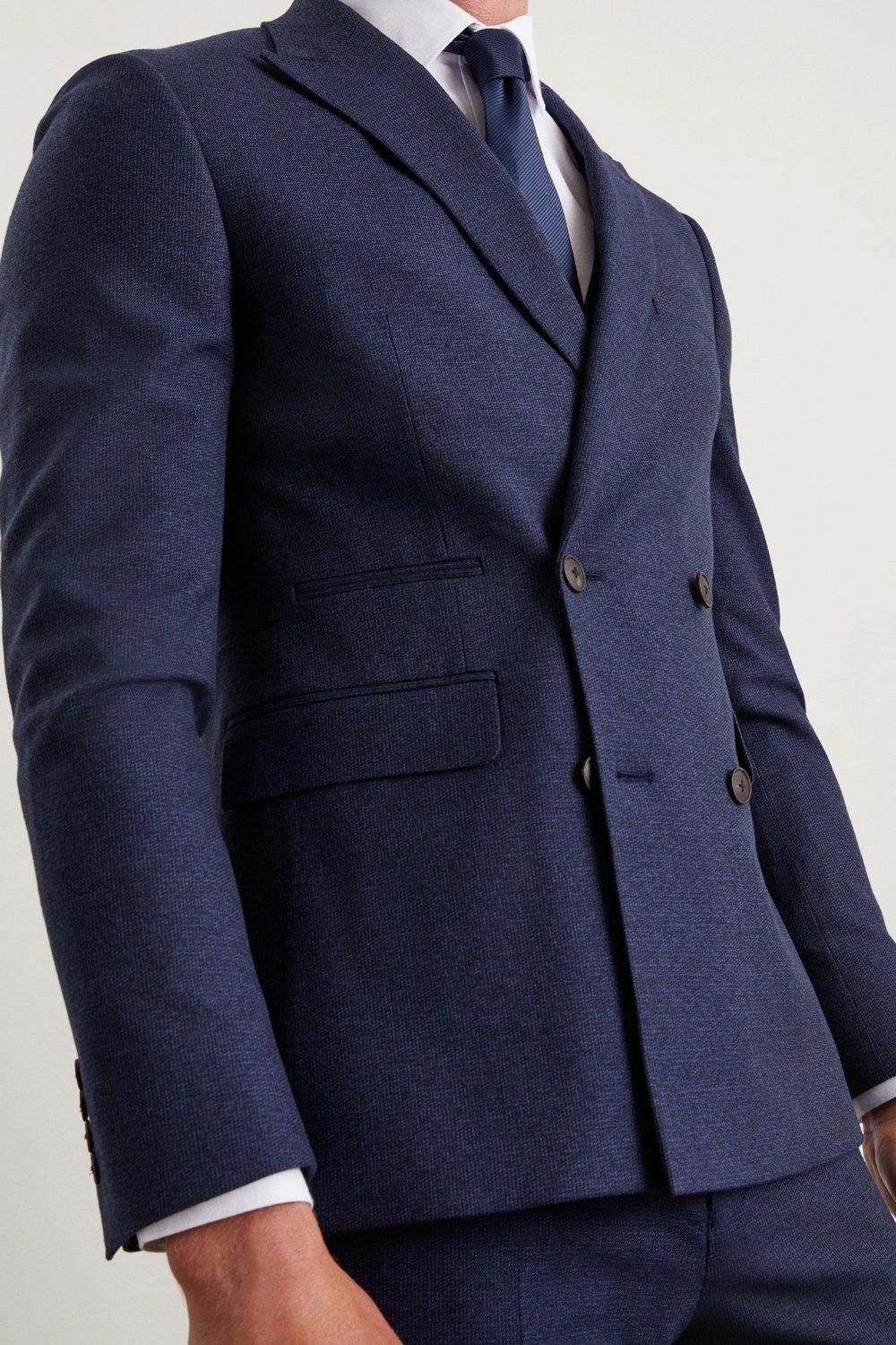 Burton Slim Fit Navy Marl Double Breasted Suit Jacket