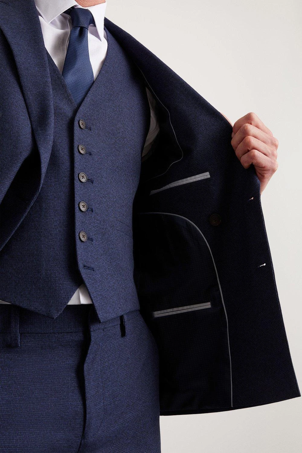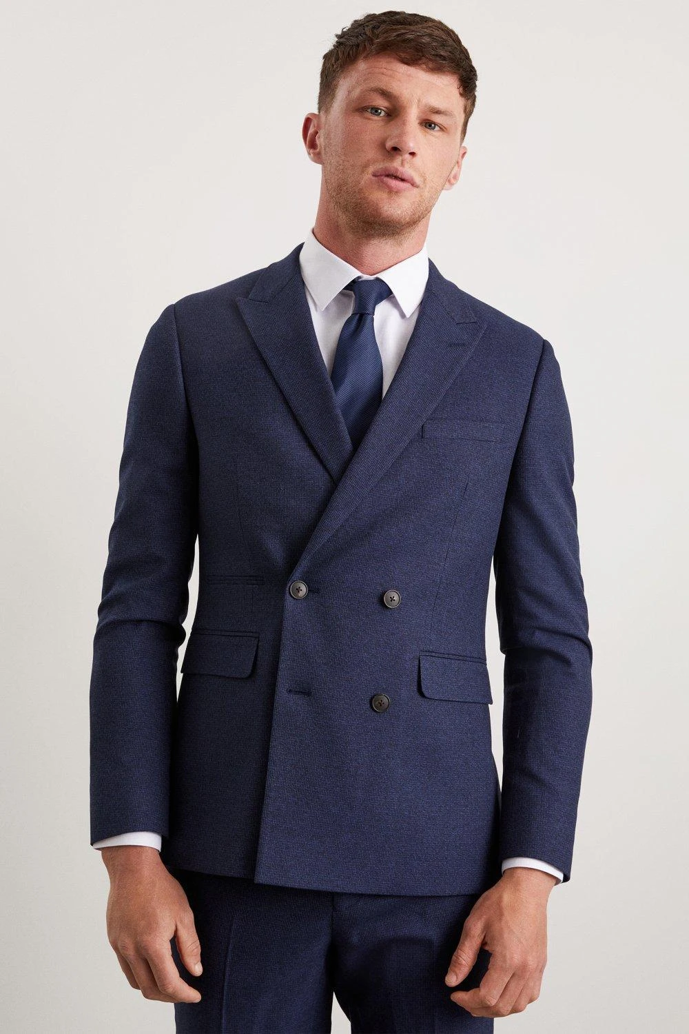 Established back in 1904, we’ve been providing you with great British style and timeless tailoring ever since. Featuring single and double breasted styles as well as classic and modern fits and patterns, our collection of mens suits will keep you on-trend with sharp tailoring, from season to season. Whether you’re suiting up for important meetings or you’ve got a special occasion coming up, we’ve got you sorted.Style: Slim Fit Navy Marl Double Breasted Suit JacketLength: Approx. 74CMFit: SlimIdeal for: Smart