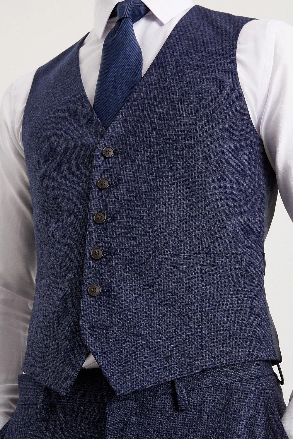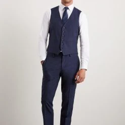 Established back in 1904, we’ve been providing you with great British style and timeless tailoring ever since. Featuring single and double breasted styles as well as classic and modern fits and patterns, our collection of mens suits will keep you on-trend with sharp tailoring, from season to season. Whether you’re suiting up for important meetings or you’ve got a special occasion coming up, we’ve got you sorted. Style: Slim Fit Navy Marl Waistcoat. Ideal for: Smart. Fit: Slim. Design: Single Button.