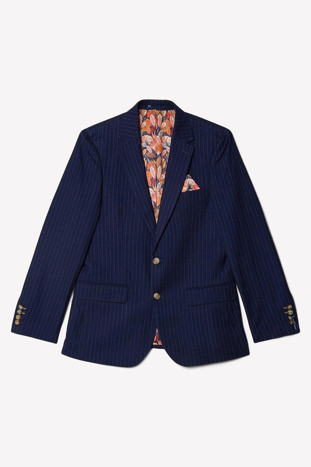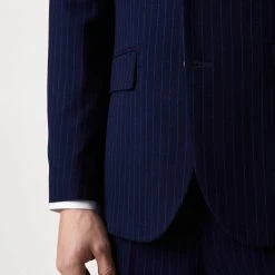 Established back in 1904, we’ve been providing you with great British style and timeless tailoring ever since. Featuring single and double breasted styles as well as classic and modern fits and patterns, our collection of mens suits will keep you on-trend with sharp tailoring, from season to season. Whether you’re suiting up for important meetings or you’ve got a special occasion coming up, we’ve got you sorted.Style: Slim Fit Navy Pinstripe Suit JacketLength: Approx. 74cmFit: SlimIdeal for: SmartDesign: Pin Stripe Fabric, Contrast Lining