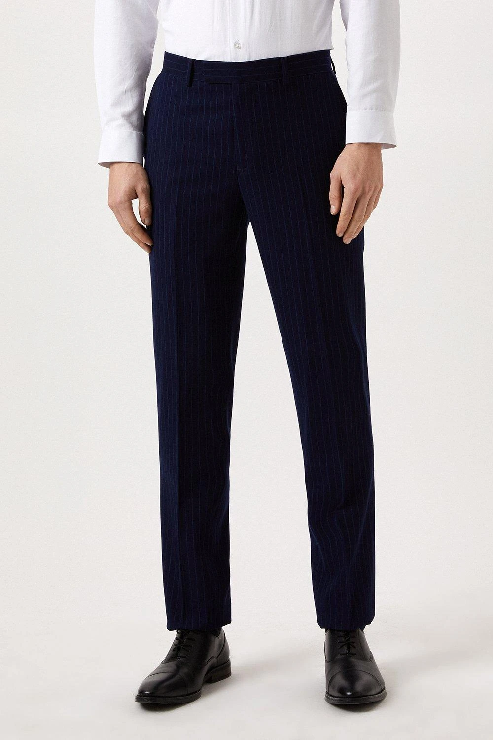 Established back in 1904, we�ve been providing you with great British style and timeless tailoring ever since. Featuring single and double breasted styles as well as classic and modern fits and patterns, our collection of mens suits will keep you on-trend with sharp tailoring, from season to season.Whether you�re suiting up for important meetings or you�ve got a special occasion coming up, we�ve got you sorted.Style: Slim Fit Navy Pinstripe Suit TrouserLength: Approx. 78cmFit: SlimIdeal for: SmartDesign: Belt Loops And Pockets