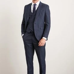 Established back in 1904, we’ve been providing you with great British style and timeless tailoring ever since. Featuring single and double breasted styles as well as classic and modern fits and patterns, our collection of mens suits will keep you on-trend with sharp tailoring, from season to season. Whether you’re suiting up for important meetings or you’ve got a special occasion coming up, we’ve got you sorted. Style: Slim Fit Navy Small Scale Check Suit Trousers. Ideal for: Smart. Fit: Slim. Design: Single Button. Model wears size UK 10 and is 5′ 9″ tall.