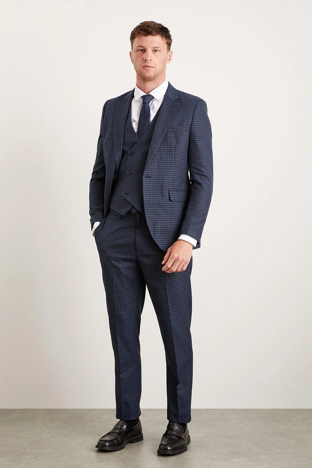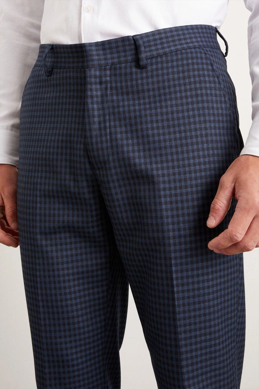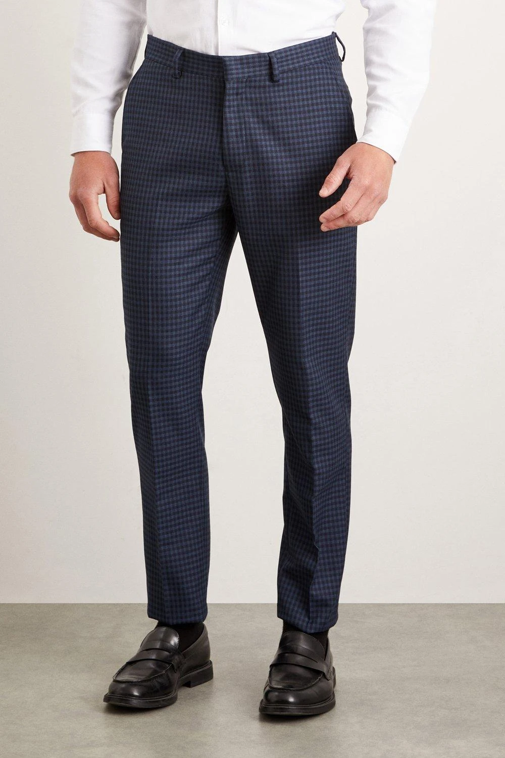 Burton Slim Fit Navy Small Scale Check Suit Trousers