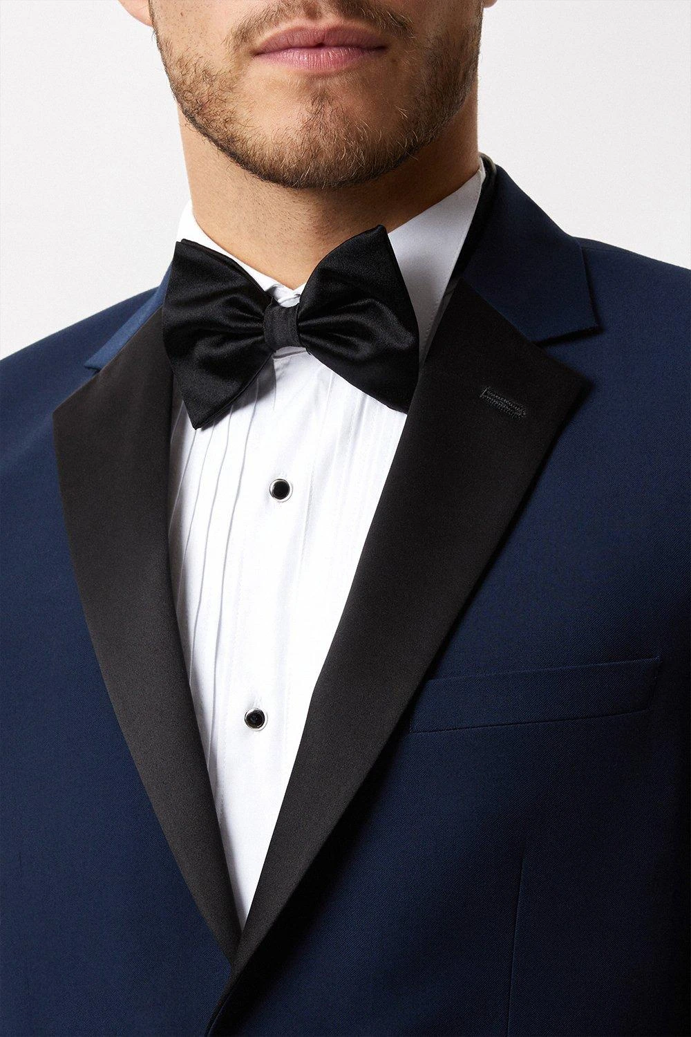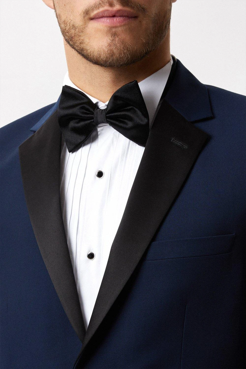 Established back in 1904, we’ve been providing you with great British style and timeless tailoring ever since. Featuring single and double breasted styles as well as classic and modern fits and patterns, our collection of mens suits will keep you on-trend with sharp tailoring, from season to season.Whether you’re suiting up for important meetings or you’ve got a special occasion coming up, we’ve got you sorted.Style: Slim Fit Navy Tuxedo Suit JacketLength: Approx. 78cmFit: SlimIdeal for: SmartDesign: Satin Notch Lapels
