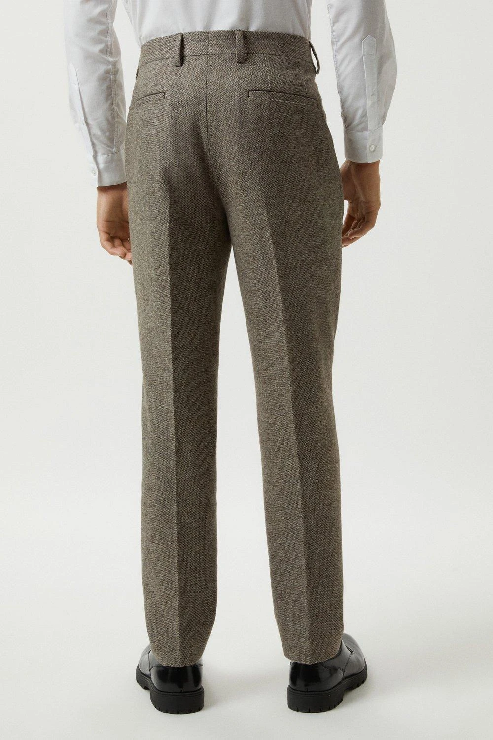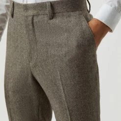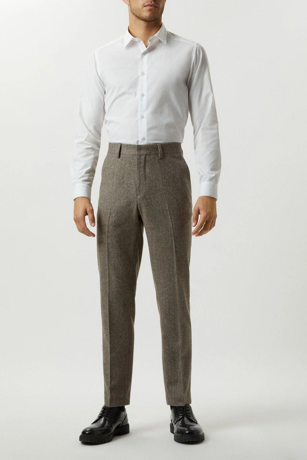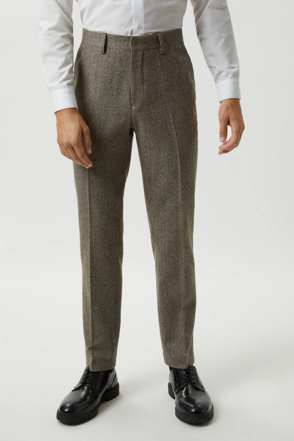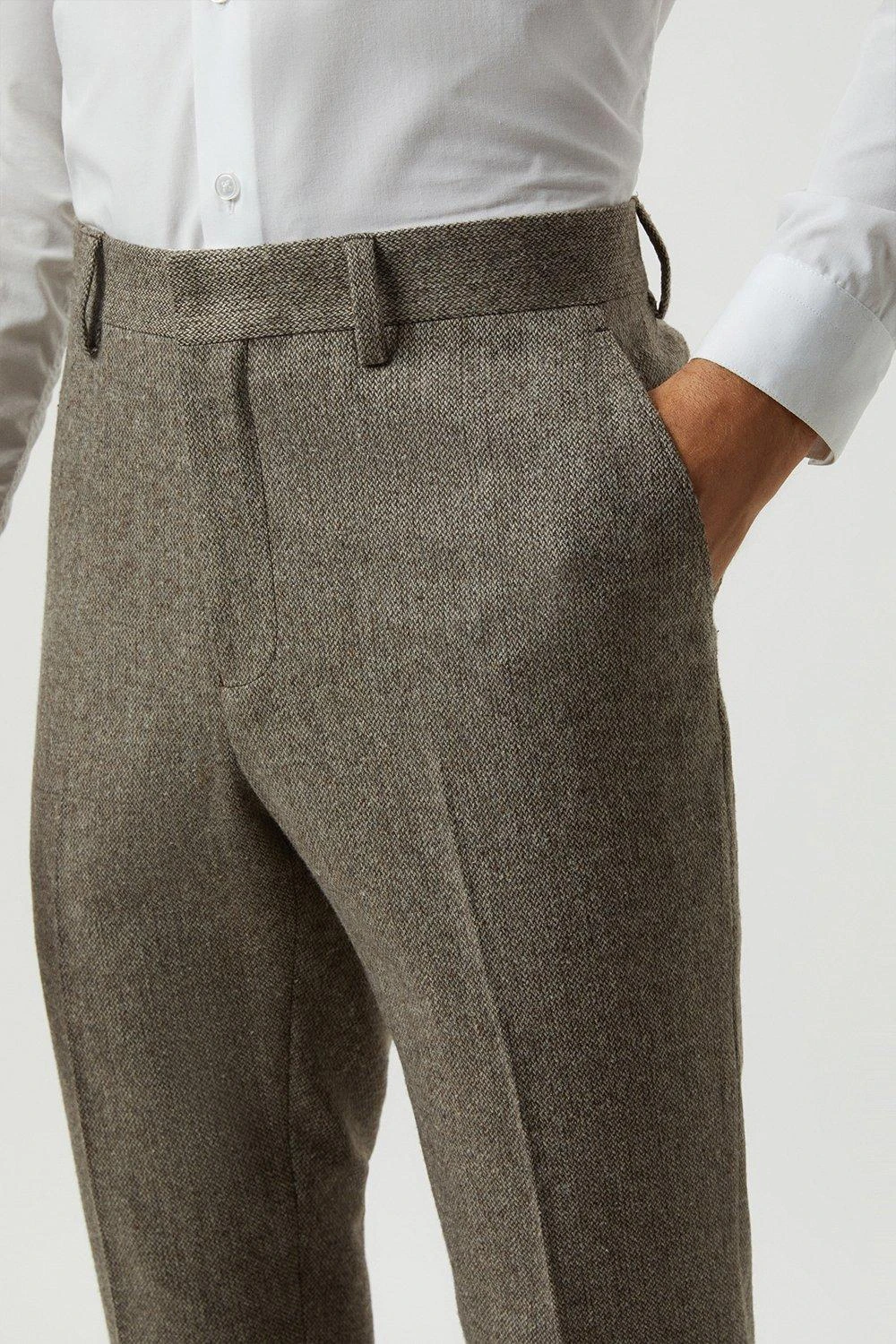 Burton Slim Fit Neutral Basketweave Tweed Suit Trousers