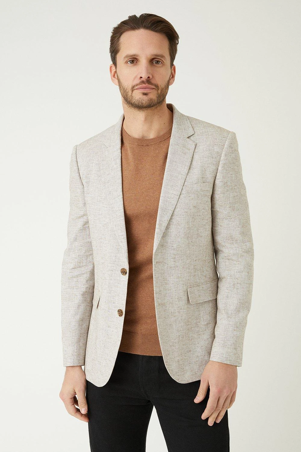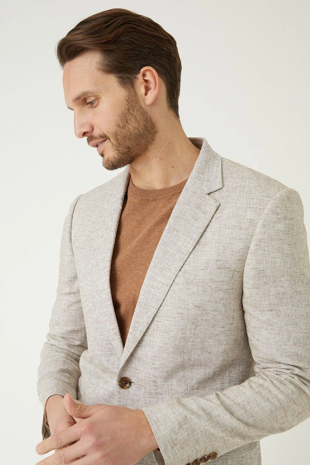 Established back in 1904, we’ve been providing you with great British style and timeless tailoring ever since. Featuring single and double breasted styles as well as classic and modern fits and patterns, our collection of mens suits will keep you on-trend with sharp tailoring, from season to season. Whether you’re suiting up for important meetings or you’ve got a special occasion coming up, we’ve got you sorted. Style: Slim Fit Neutral End On End Blazer. Ideal for: Smart. Fit: Slim. Design: Single Button. Model wears size UK 10 and is 5′ 9″ tall.