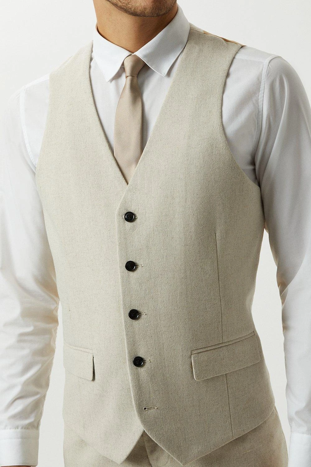 Part of our range in partnership with Harry Brown tailoring, these premium three-piece suits are perfect for the any seasons social occasions in a blend of heritage style, classic fabrics and modern fits.Style: Slim Fit Neutral Tweed Suit WaistcoatFit: SlimLength: Approx. 59cmDesign: Tweed Fabric, Adjustable Back Strap