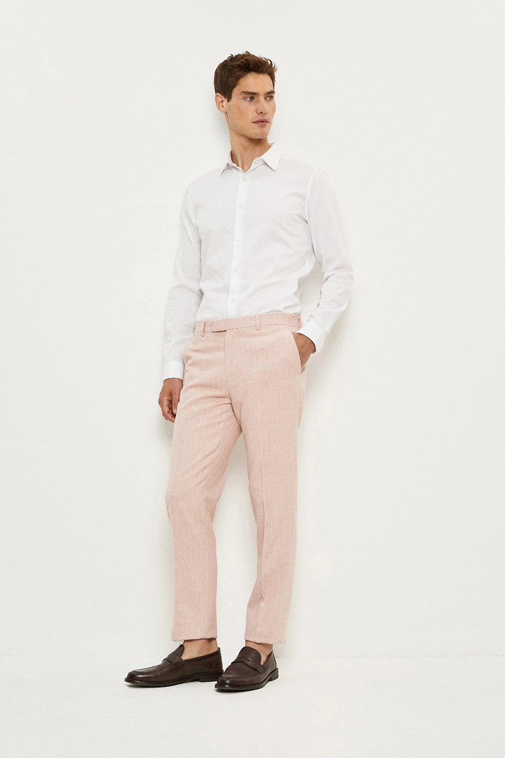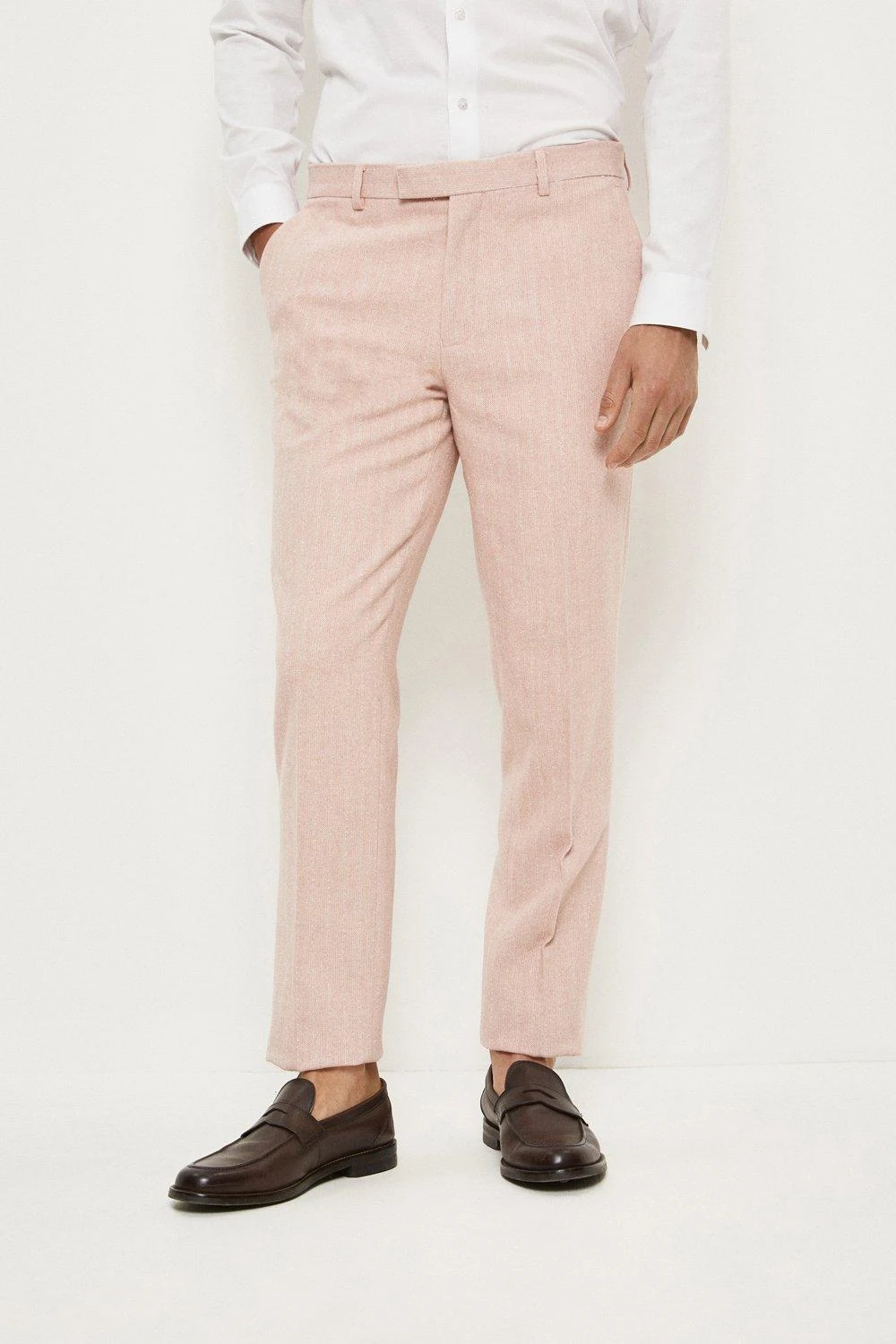 With over 100 years of tailoring history Burton has continued to develop suits that deliver style, comfort and affordability with most suits available as 2 or 3 pieces.Style: Slim Fit Pink Herringbone Tweed Suit TrouserIdeal for: Smart