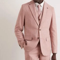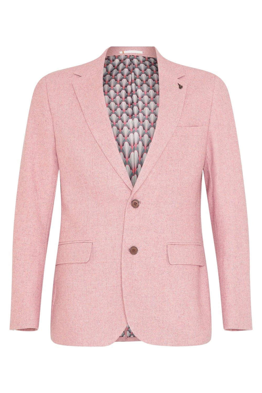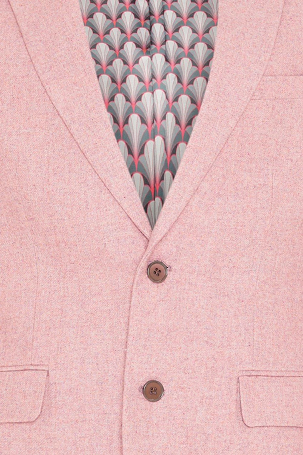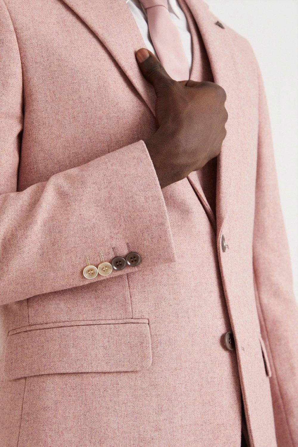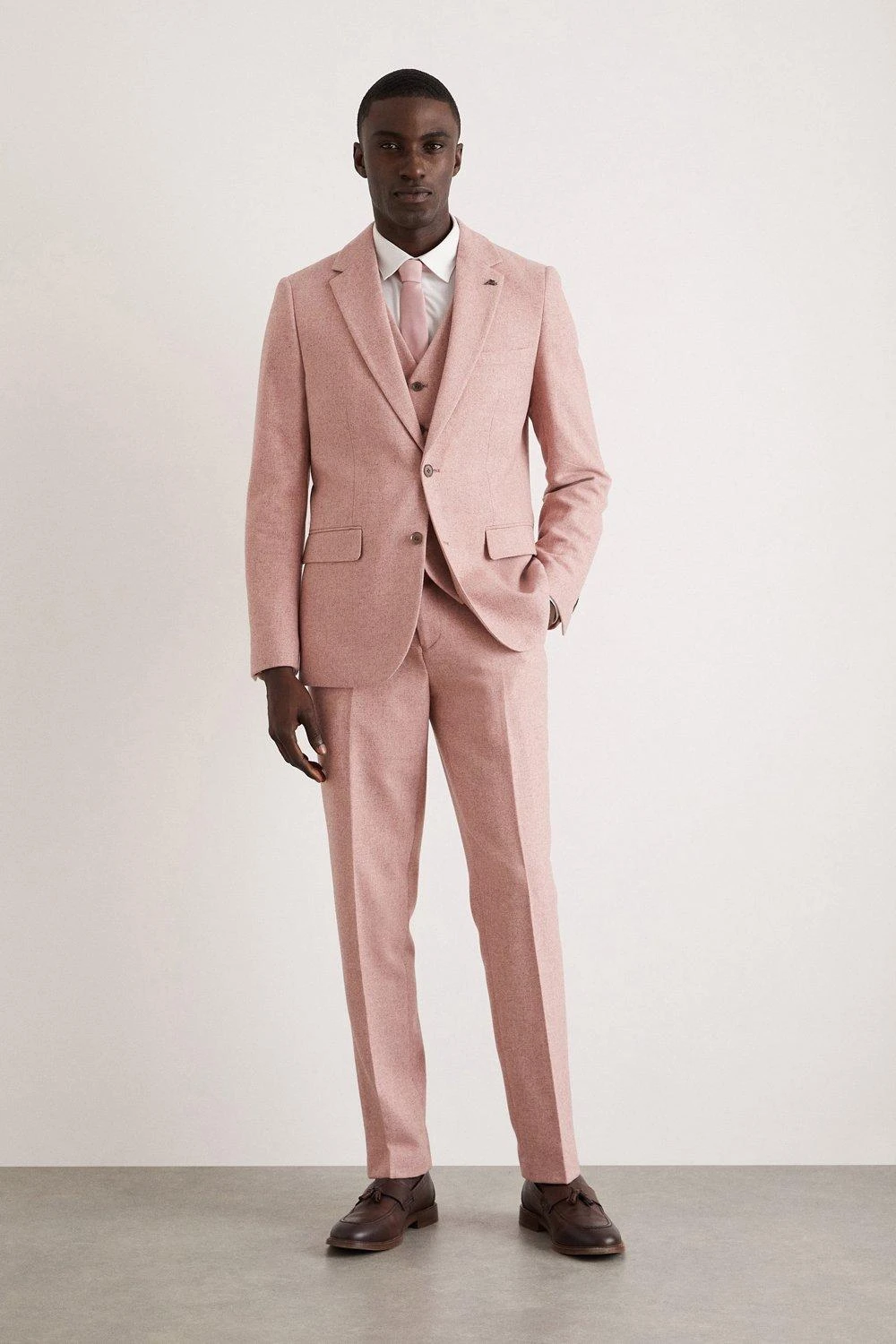 Woven from light pink tweed, this slim-fit jacket features the characteristic flecks and tactile appeal of this unique fabric. With structured shoulders and front darts, this style favours a traditional British tailoring cut for a sharp silhouette. Keep the vibe relaxed with a pastel-hued tie and light brown leather shoes. Style: Slim Fit Pink Tweed Suit JacketLength: Approx. 74cmFit: SlimIdeal for: SmartDesign: Tweed