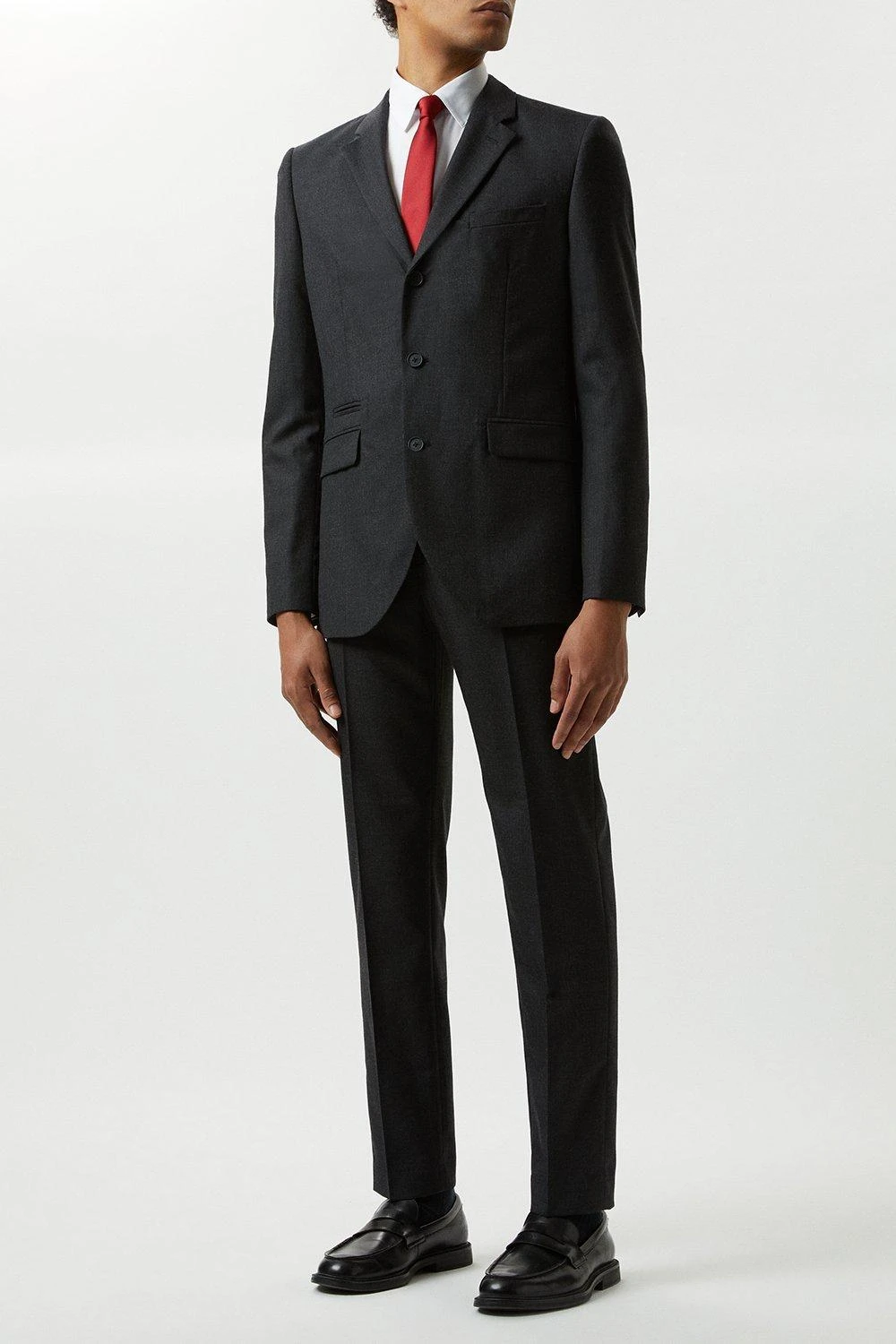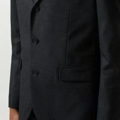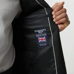 Reigniting our historic partnership with Alfred Brown, 1915, we have utilised our combined 224 years of expertise to develop 100% British wool suits; and with history in mind our designers have carefully reimagined the classic suit from 1966 worn by our English champions. With traditional detailing such as the three button centre front and limited edition branding.Style: Slim Fit Plain Charcoal Wool Suit JacketLength: Approx. 75cmFit: SlimIdeal for: SmartDesign: Classic Three Button Centre Front