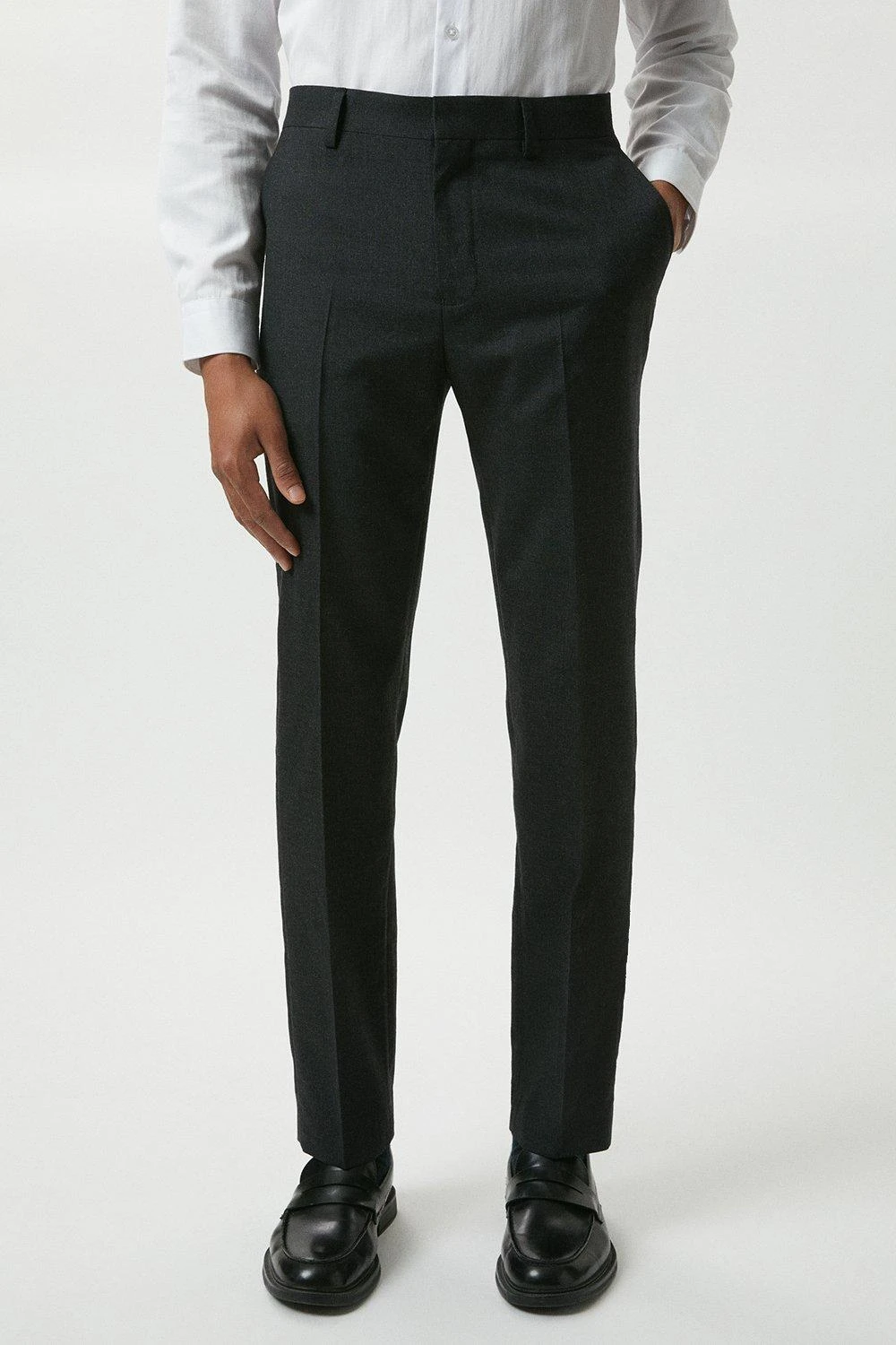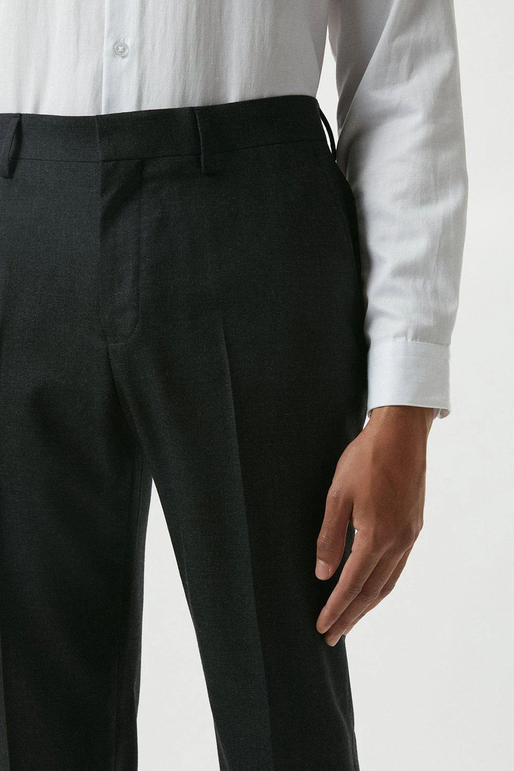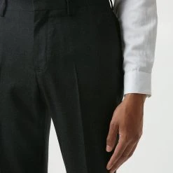 Reigniting our historic partnership with Alfred Brown, 1915, we have utilised our combined 224 years of expertise to develop 100% British wool suits; and with history in mind our designers have carefully reimagined the classic suit from 1966 worn by our English champions. With traditional detailing such as the three button centre front and limited edition branding.Style: Slim Fit Plain Charcoal Wool Suit TrousersLength: Approx. 78cmFit: SlimIdeal for: SmartDesign: Belt Loops, Pockets, Zip And Hook And Bar Fastening