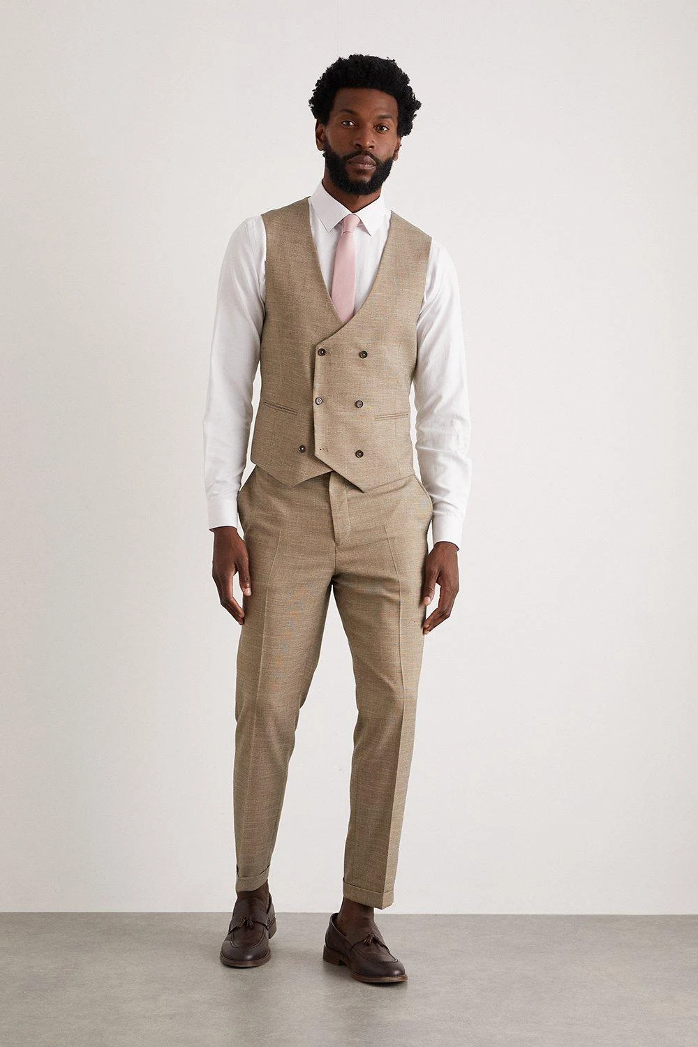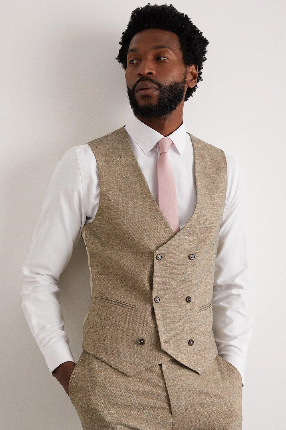 Established back in 1904, we’ve been providing you with great British style and timeless tailoring ever since. Featuring single and double breasted styles as well as classic and modern fits and patterns, our collection of mens suits will keep you on-trend with sharp tailoring, from season to season. Whether you’re suiting up for important meetings or you’ve got a special occasion coming up, we’ve got you sorted. Style: Slim Fit Stone End On End Waistcoat. Ideal for: Smart. Fit: Slim. Design: Single Button. Model wears size UK 10 and is 5′ 9″ tall.