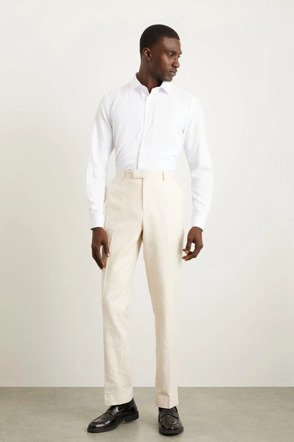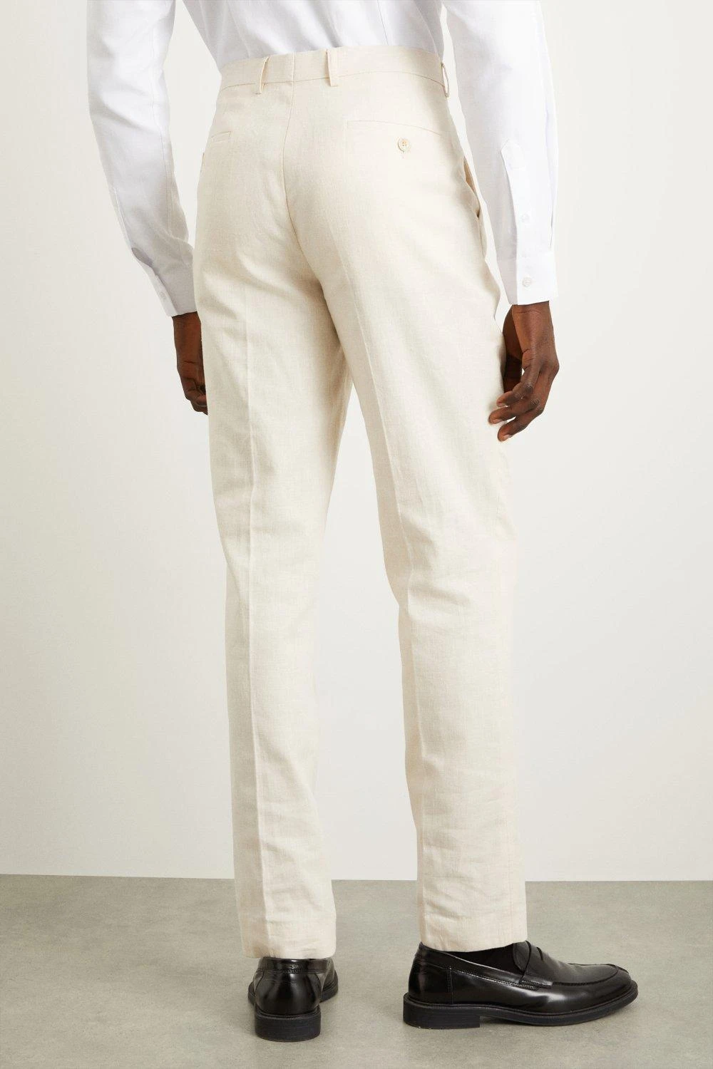 Burton Slim Fit Stone Linen Blend Suit Trousers
