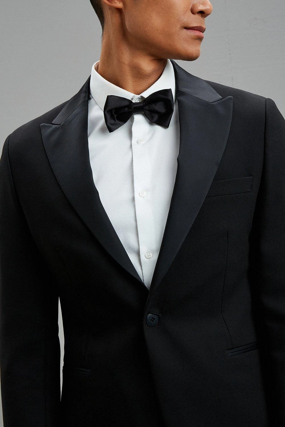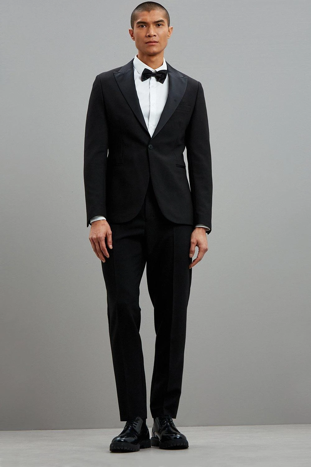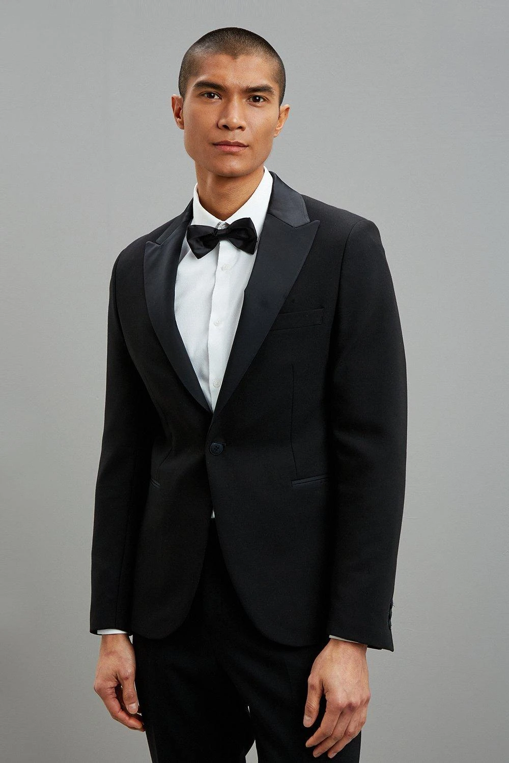 Established back in 1904, we’ve been providing you with great British style and timeless tailoring ever since. Featuring single and double breasted styles as well as classic and modern fits and patterns, our collection of mens suits will keep you on-trend with sharp tailoring, from season to season.Whether you’re suiting up for important meetings or you’ve got a special occasion coming up, we’ve got you sorted.Style: Super Skinny Fit Black Tuxedo Suit JacketLength: Approx. 75cmFit: SkinnyIdeal for: Occasion