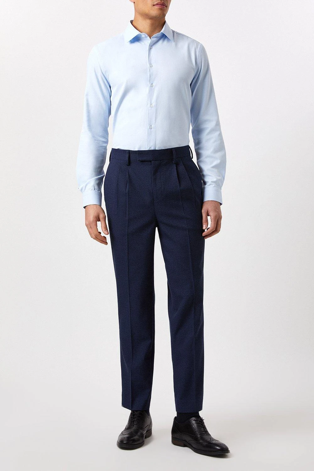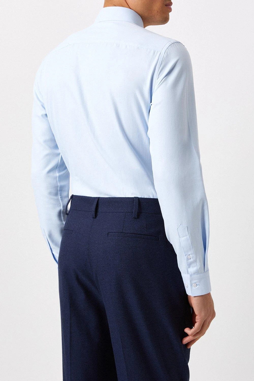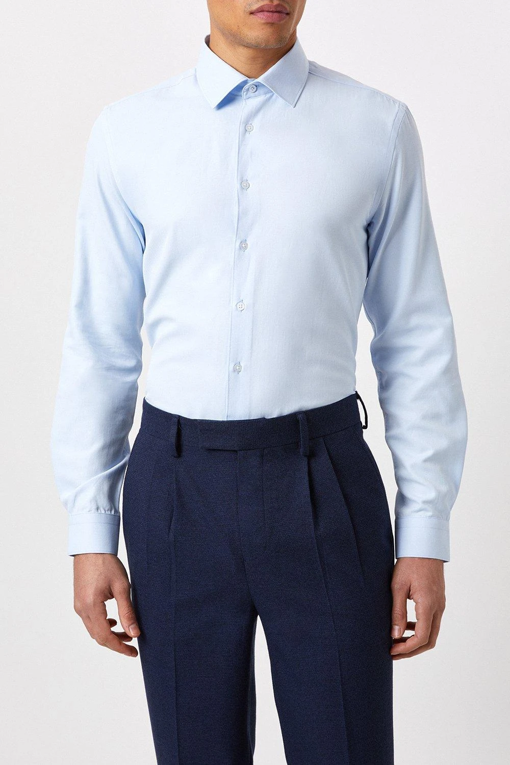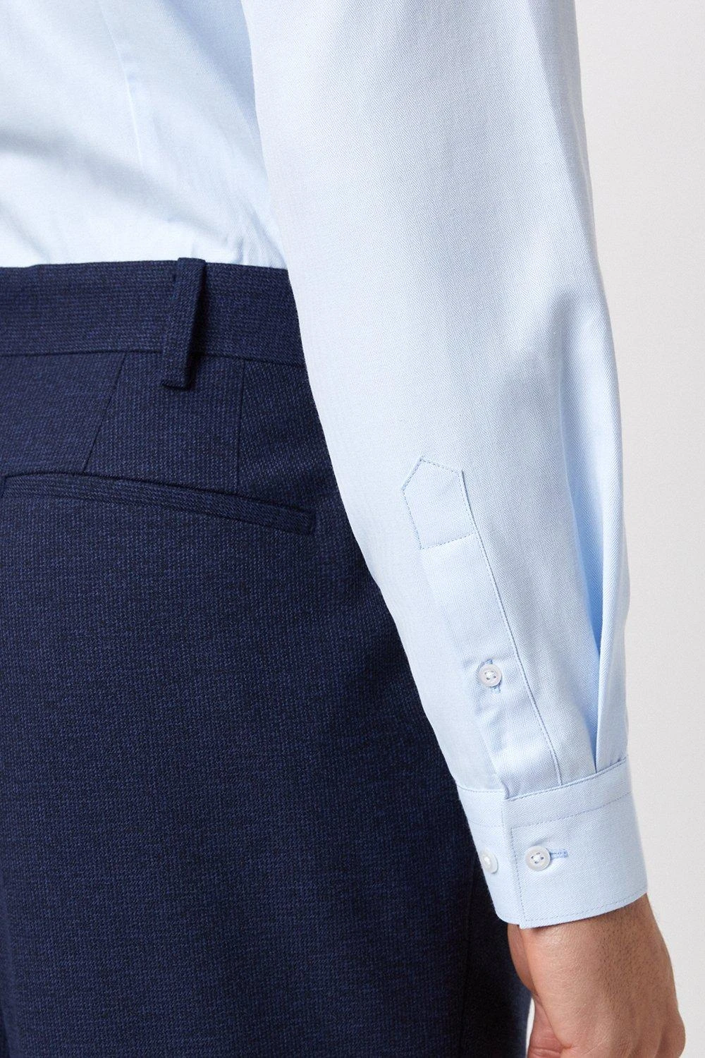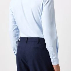 Burton Tailored Fit Blue Herringbone Texture Smart Shirt