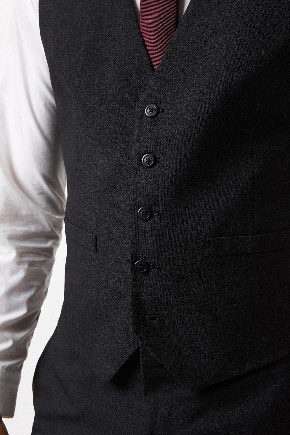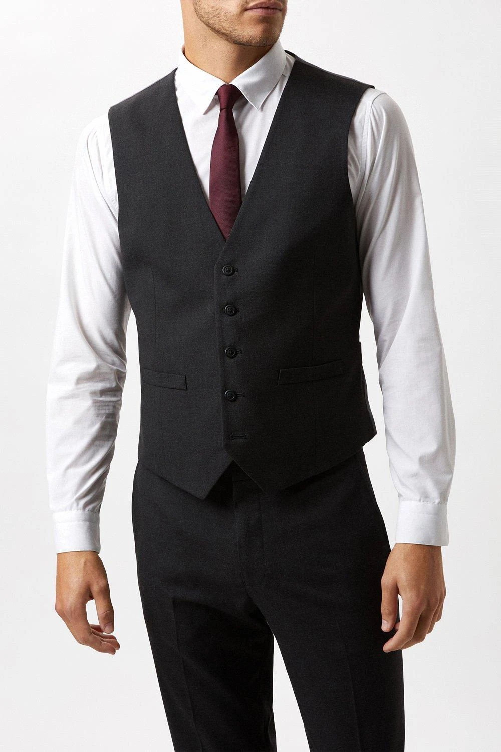 Burton have hand selected colours and fabrics that are not only perfect for any summer occasion but are light weight and follow key tailoring trends of the season.Style: Tailored Fit Charcoal Essential WaistcoatIdeal for: Smart