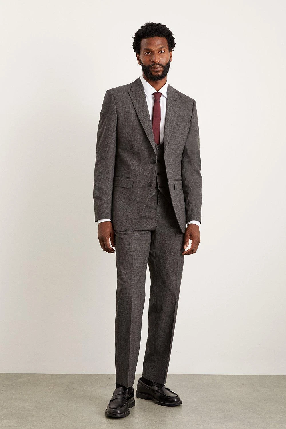 Woven in a discreet check pattern for extra versatility, this tailored jacket features a notch lapel, flap pockets at the hip and a rear centre vent to ensure a comfortable yet flattering fit. Style it with a bright-hued tie for a day wedding, a darker tone one for an evening event or with solid black accessories for a more sober occasion.Style: Tailored Fit Charcoal Suit JacketLength: Approx. 74CMFit: TailoredIdeal for: Smart