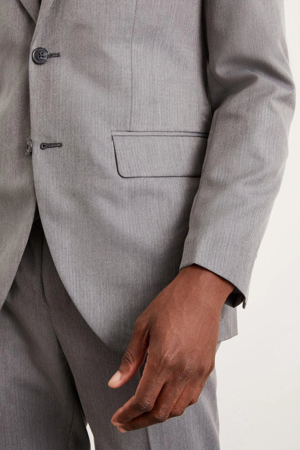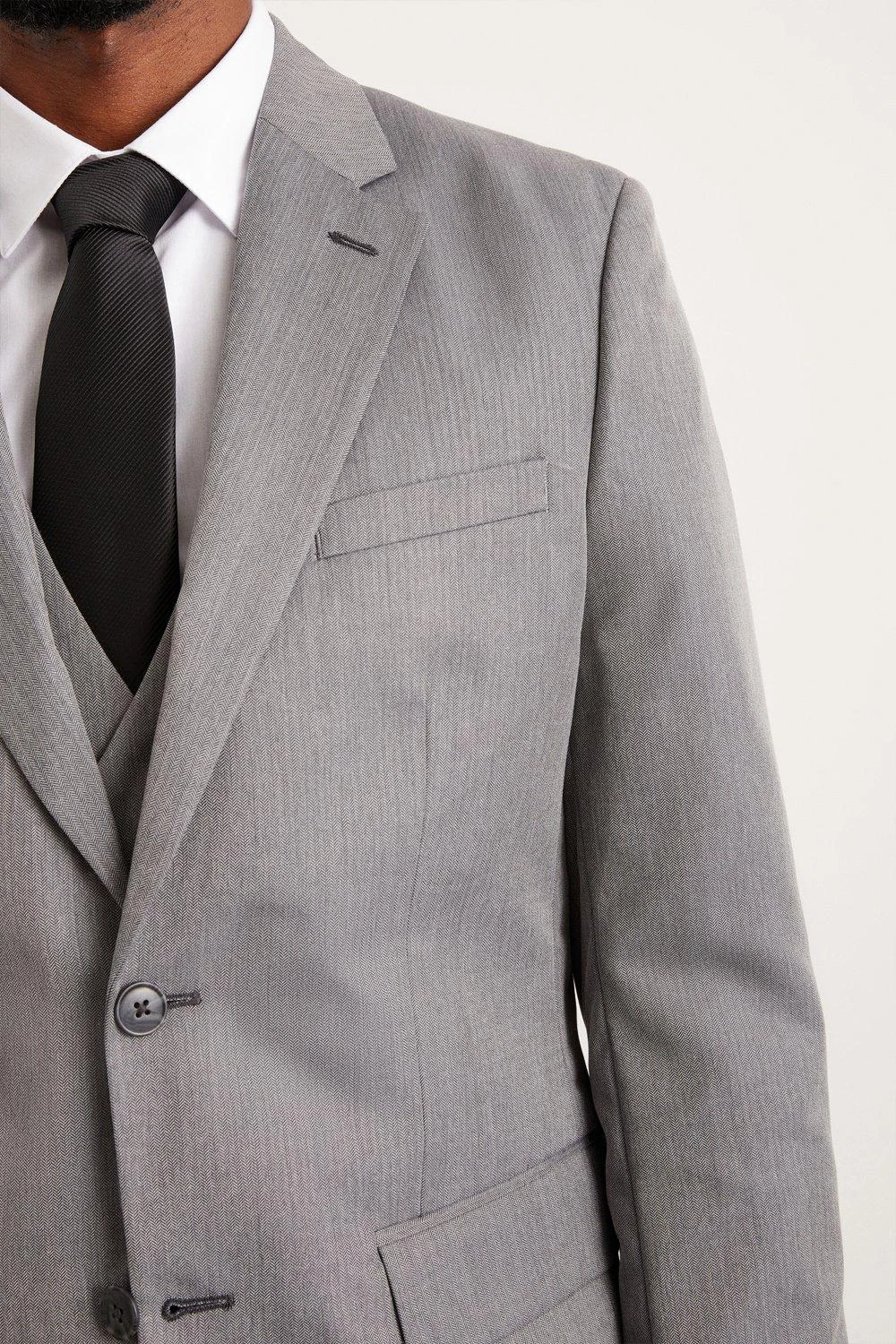 Established back in 1904, we’ve been providing you with great British style and timeless tailoring ever since. Featuring single and double breasted styles as well as classic and modern fits and patterns, our collection of mens suits will keep you on-trend with sharp tailoring, from season to season.Whether you’re suiting up for important meetings or you’ve got a special occasion coming up, we’ve got you sorted.Style: Tailored Fit Grey Mini Herringbone SuitjacketLength: Approx. 75cmFit: TailoredIdeal for: SmartDesign: Herringbone Texture