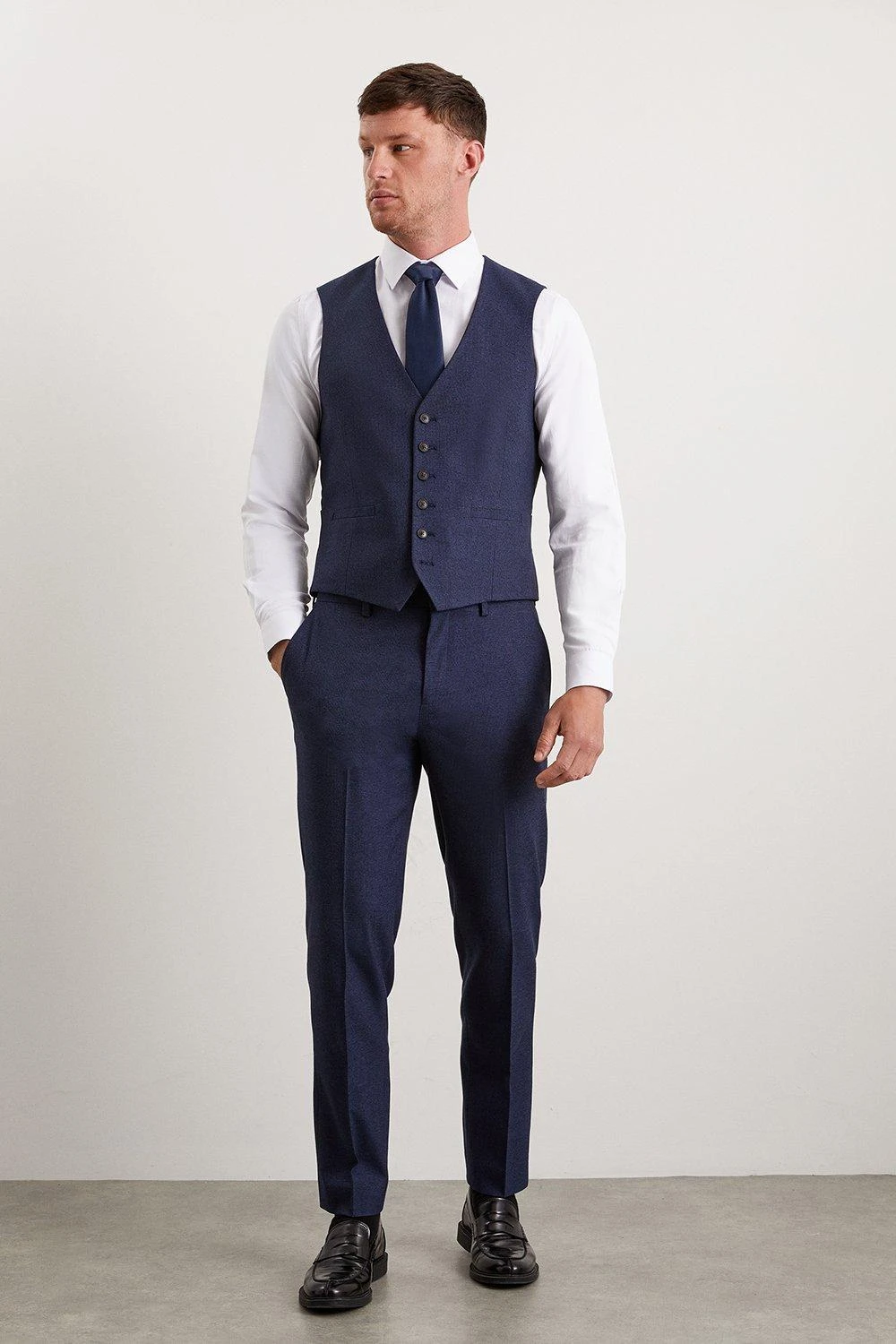 Established back in 1904, we’ve been providing you with great British style and timeless tailoring ever since. Featuring single and double breasted styles as well as classic and modern fits and patterns, our collection of mens suits will keep you on-trend with sharp tailoring, from season to season. Whether you’re suiting up for important meetings or you’ve got a special occasion coming up, we’ve got you sorted.Style: Tailored Fit Navy Marl WaistcoatLength: Approx. 58CMFit: TailoredIdeal for: Smart