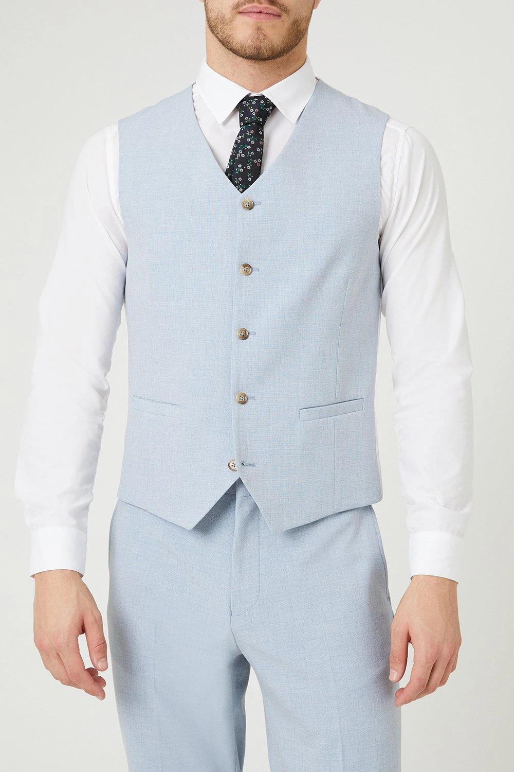 Burton Tailored Fit Pale Blue End On End Waistcoat
