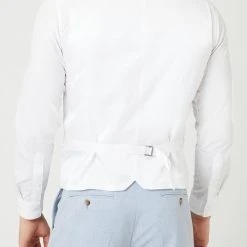 Established back in 1904, we’ve been providing you with great British style and timeless tailoring ever since. Featuring single and double breasted styles as well as classic and modern fits and patterns, our collection of mens suits will keep you on-trend with sharp tailoring, from season to season. Whether you’re suiting up for important meetings or you’ve got a special occasion coming up, we’ve got you sorted. Style: Tailored Fit Pale Blue End On End Waistcoat. Ideal for: Smart. Fit: Tailored. Design: Single Button. Model wears size UK 10 and is 5′ 9″ tall.