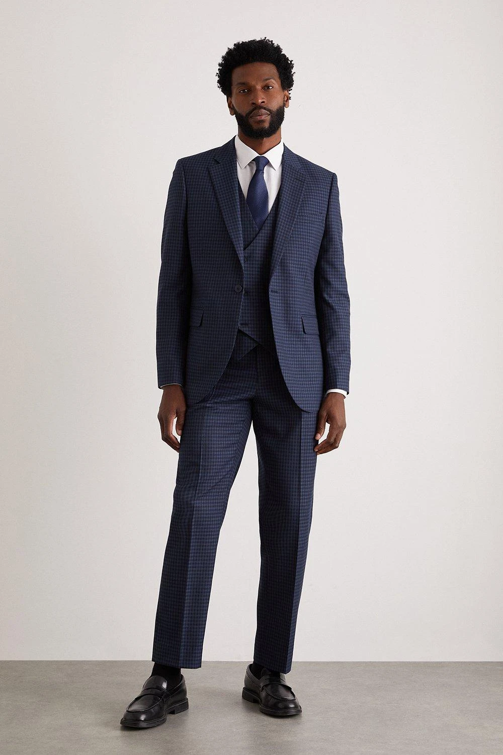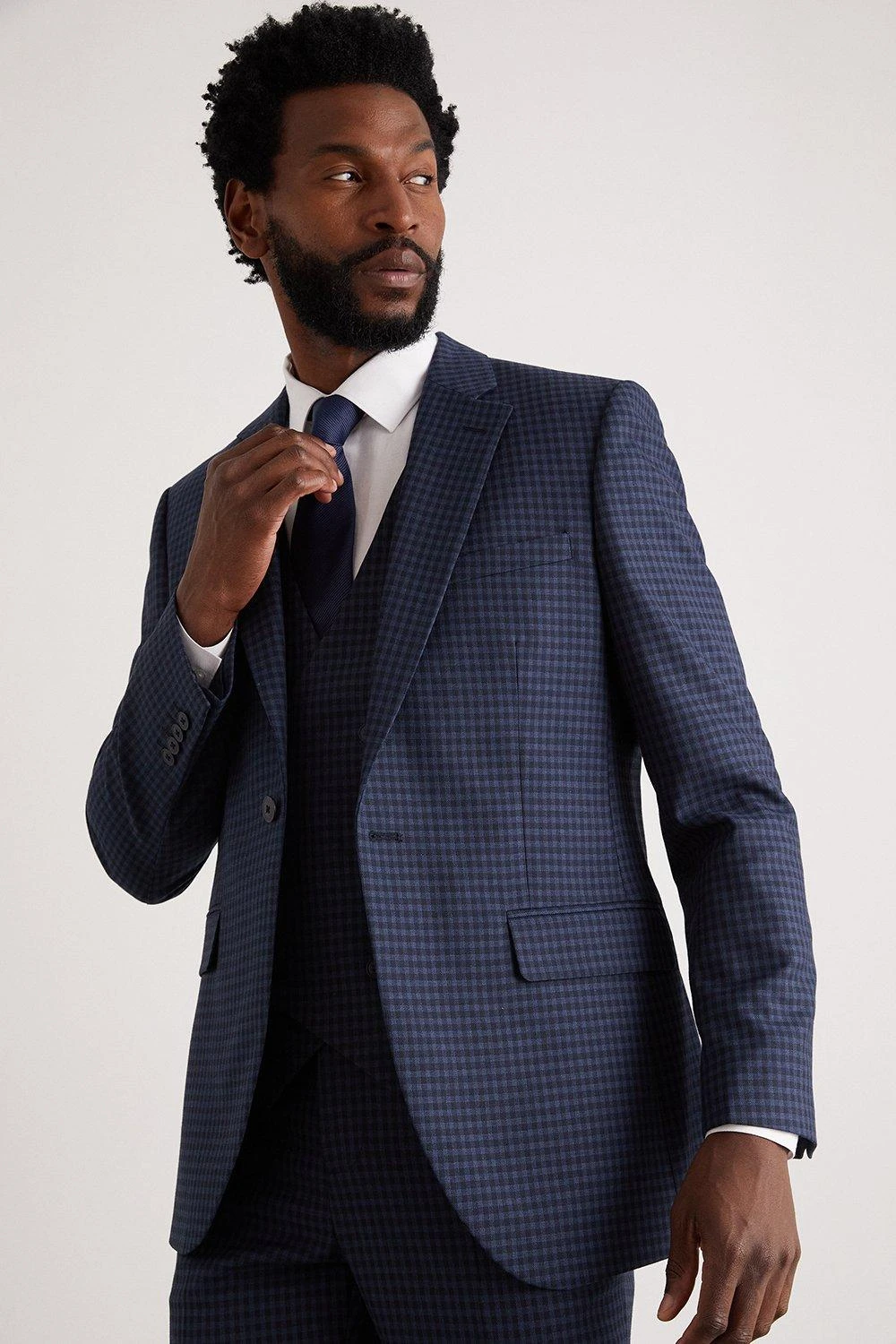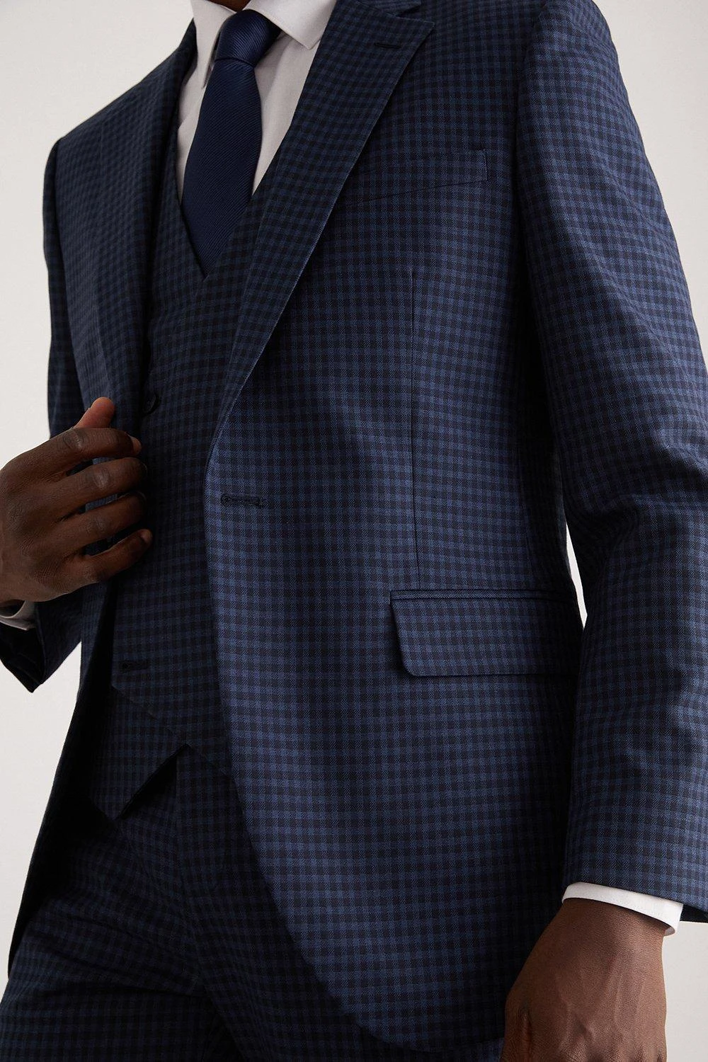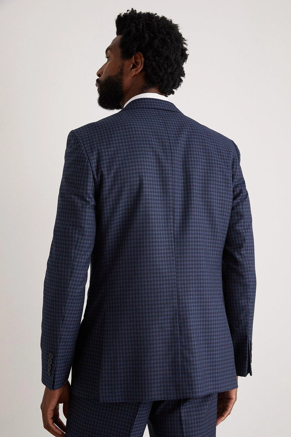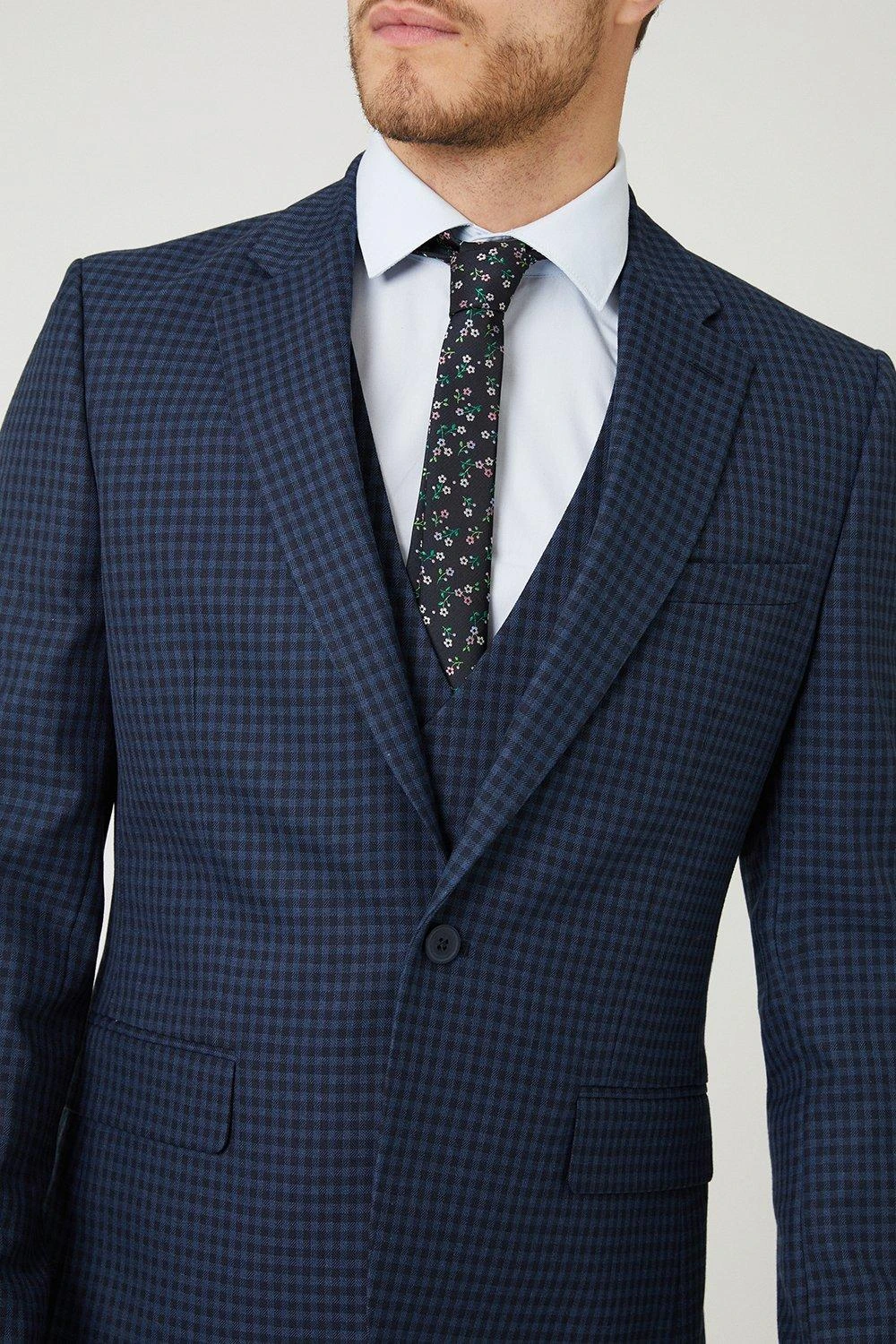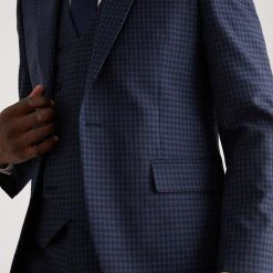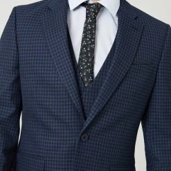 Burton Tailored Navy Small Scale Check Suit Jacket