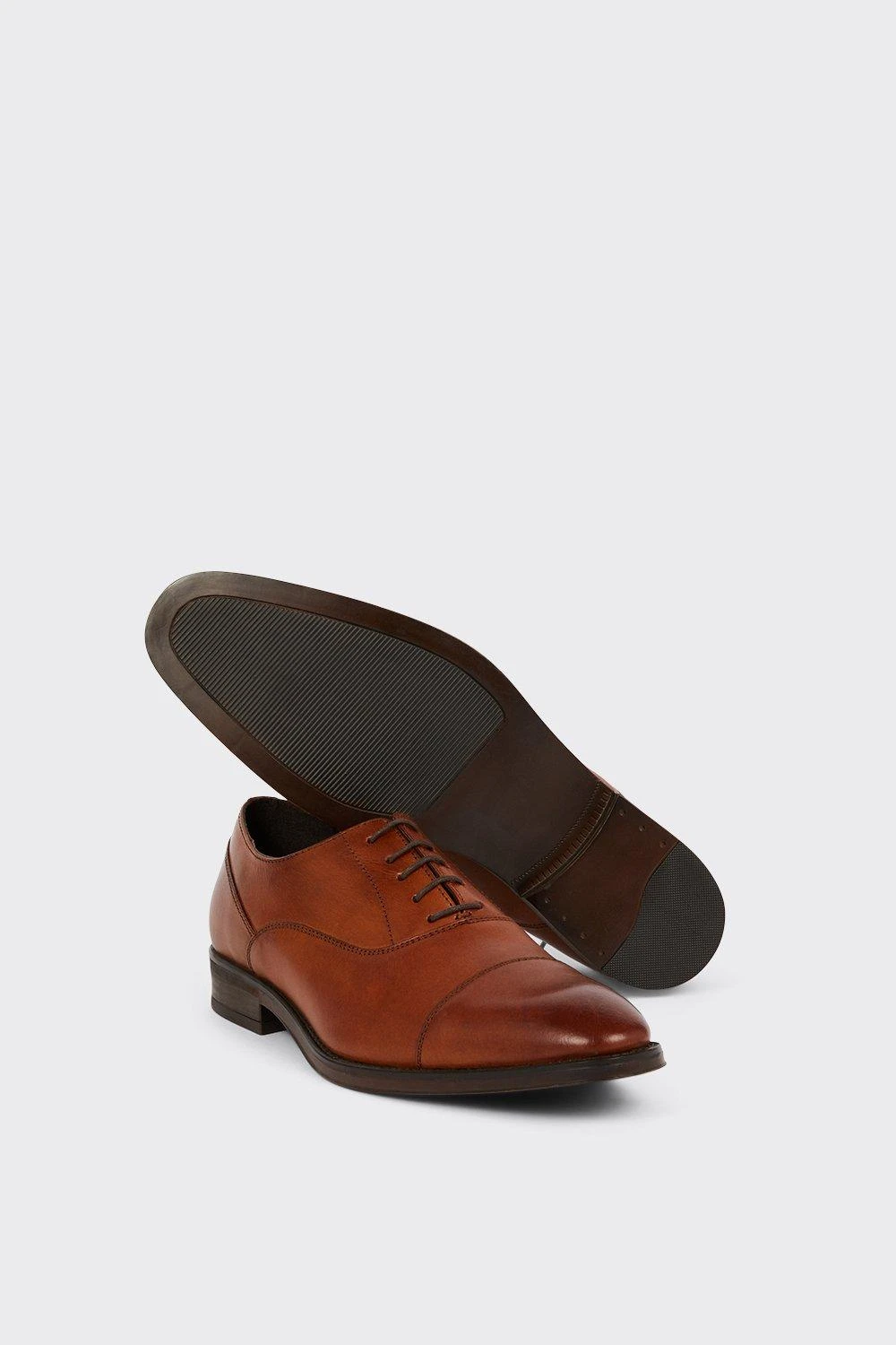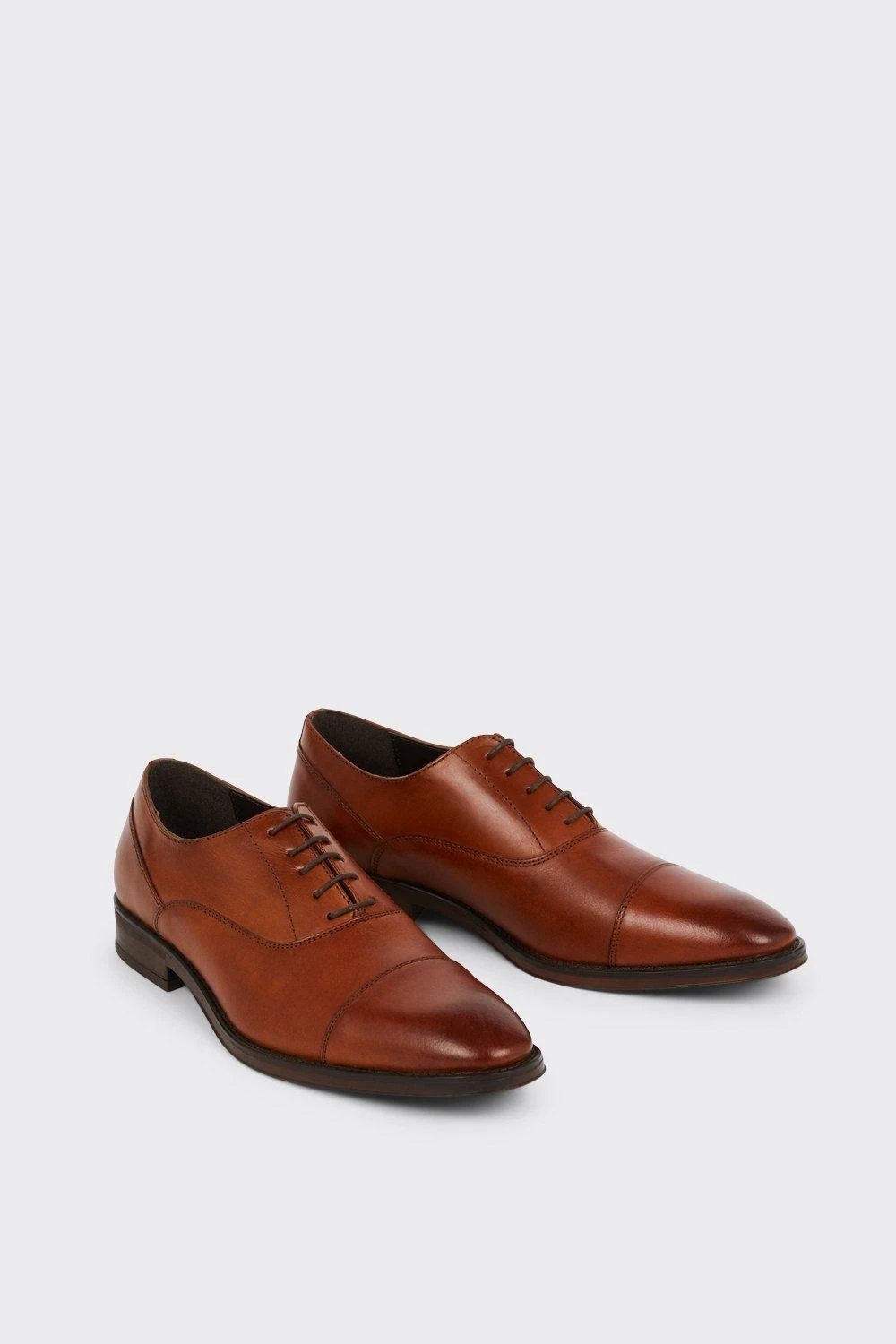 Step into style. Our new season shoes include something for every occasion. If you’re looking for something smart opt for classic black oxford brogue or classic tan derby, or keep things casual with leather smart trainers and formal slip on styles. Explore our formal collection of brogue, Oxford and derby shoes for every occasion.Style: Tan Leather Oxford Toe Cap ShoesFit: RegularIdeal for: SmartDesign: Lace Up