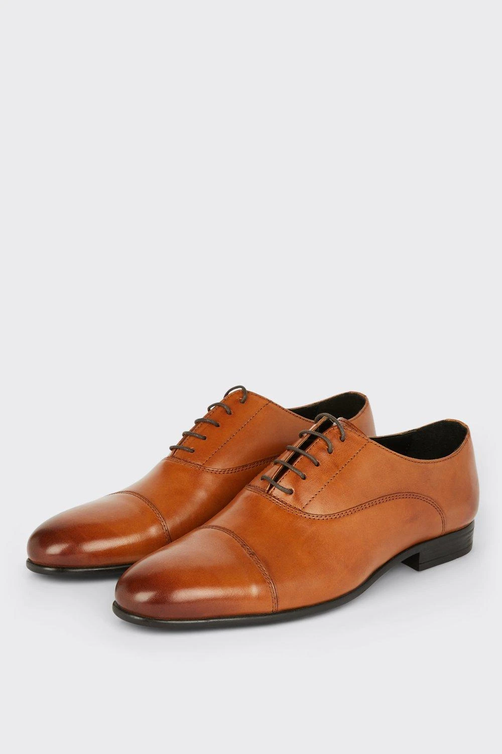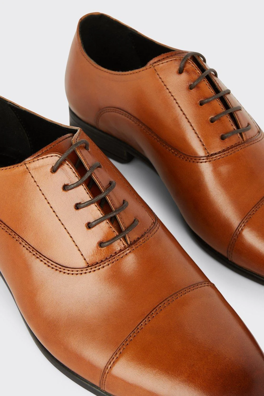 Step into style. Our new season shoes include something for every occasion. If you’re looking for something smart opt for classic black oxford brogue or classic tan derby, or keep things casual with leather smart trainers and formal slip on styles. Explore our formal collection of brogue, Oxford and derby shoes for every occasion.Style: Leather Smart Tan Oxford Toe Cap ShoeFit: RegularIdeal for: SmartDesign: Toe Cap Detail