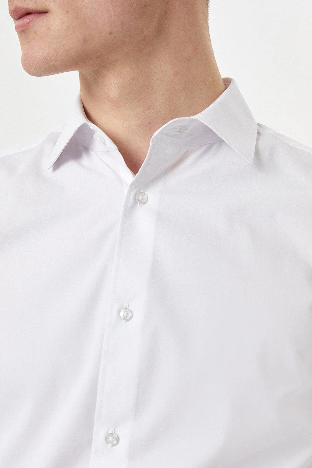 Presented in slim, skinny and tailored fit and available in a wide range of collar sizes, our collection of formal shirts has something for every style and occasion. Choose from a variety of textures herringbone, twill or poplin for an extra-special touch. Style: White Slim Fit Long Sleeve Easy Iron Shirt. Ideal for: Smart. Fit: Slim. Design: Plain. Model wears size UK 10 and is 5′ 9″ tall.