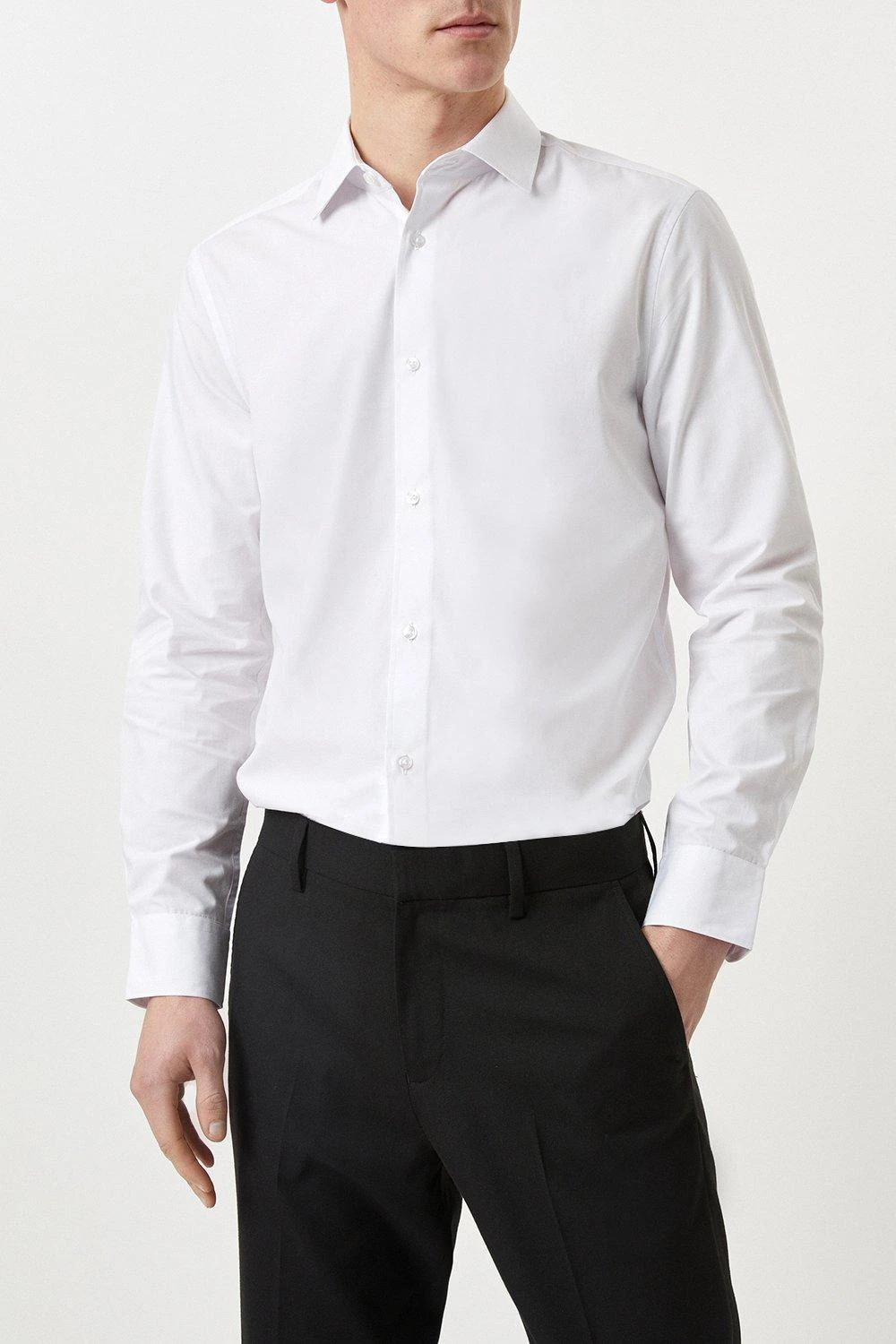 Refresh your staples with our must-have shirt selection. Keep things classic with white, blue, and black collared shirts, or bring your look to life with printed patterns. From different sleeve lengths and laidback overshirts to formal shirts, our collection has it all.Style: White Tailored Fit Long Sleeve Easy Iron ShirtLength: Approx. 72CMFit: Tailored FitIdeal for: Smart