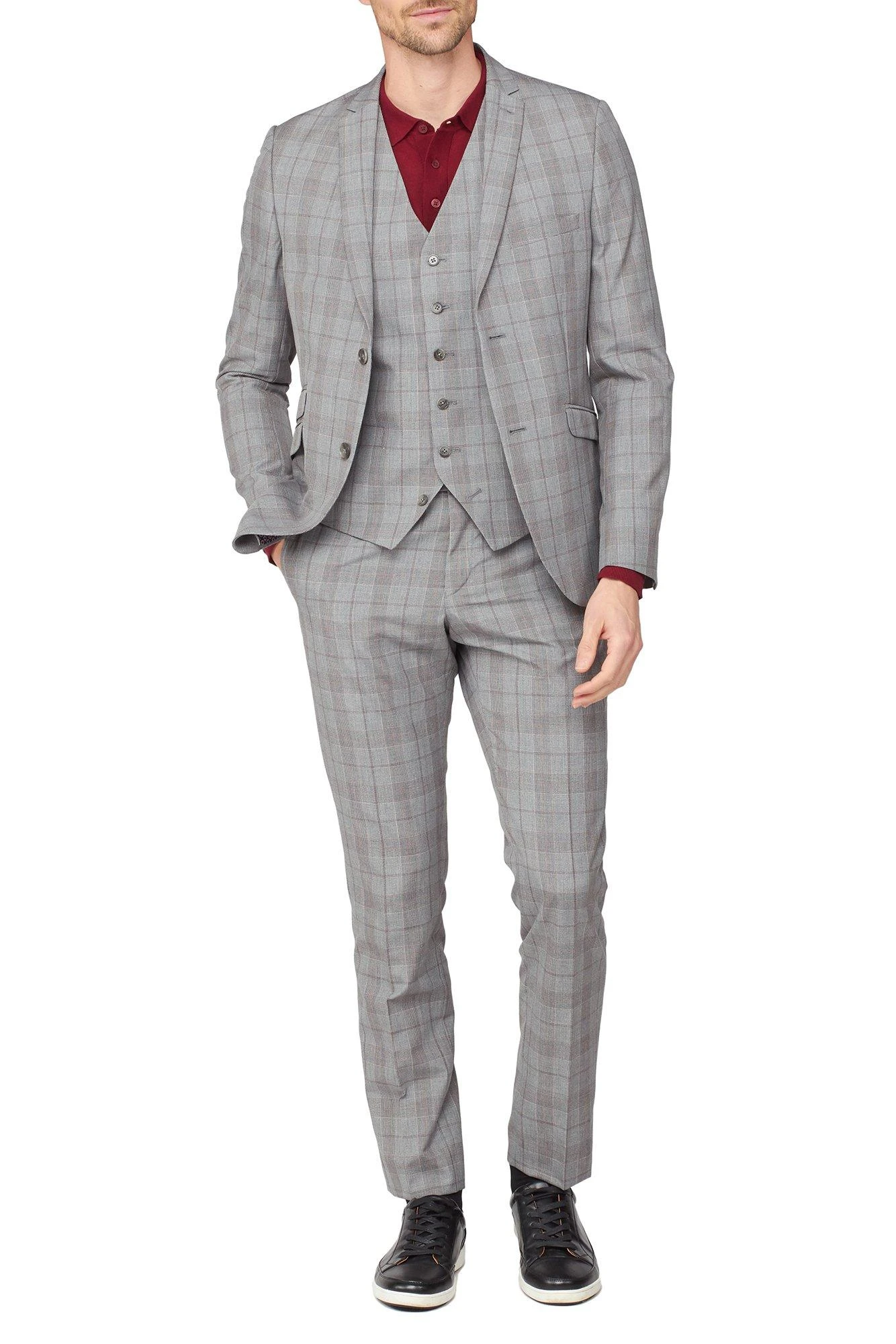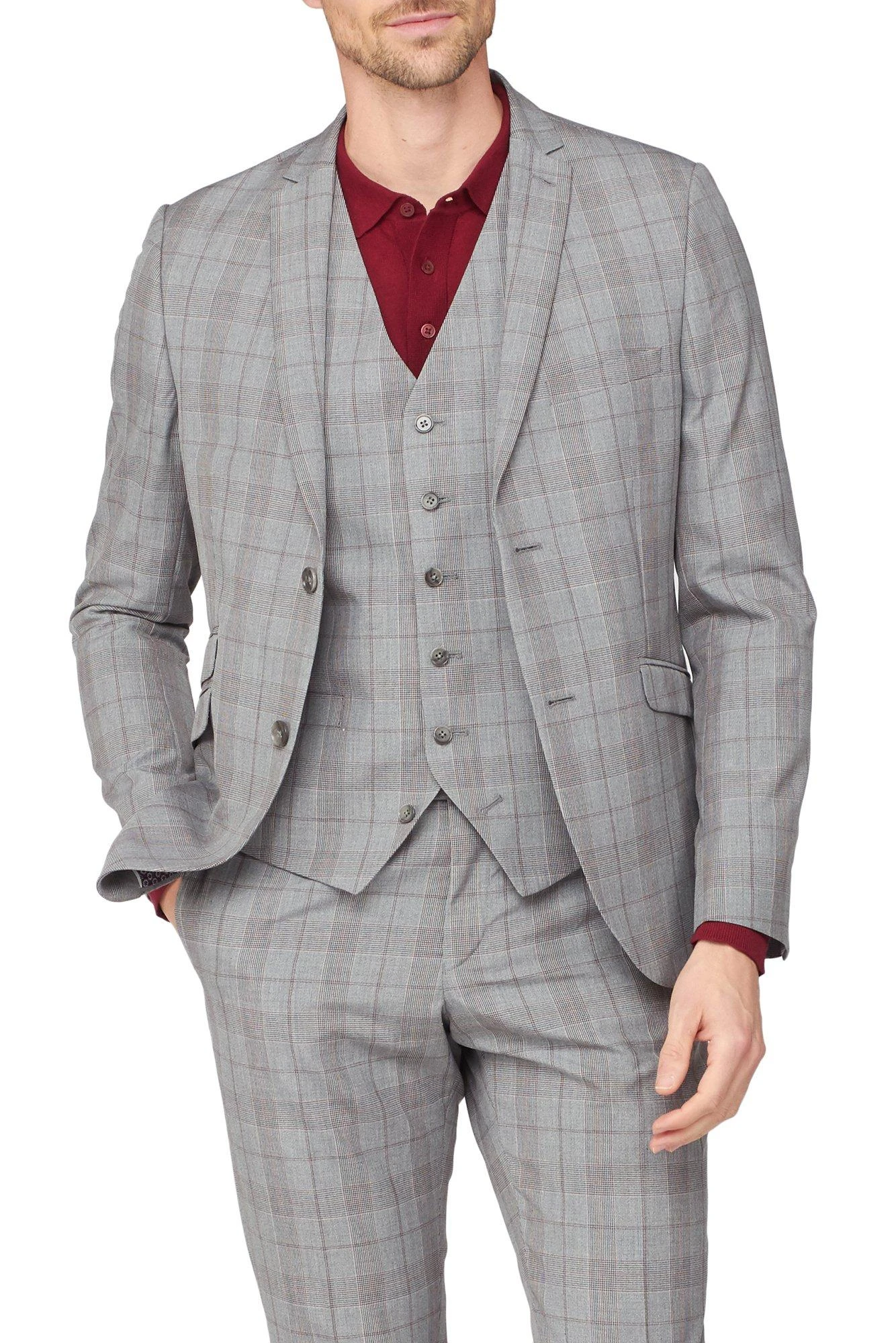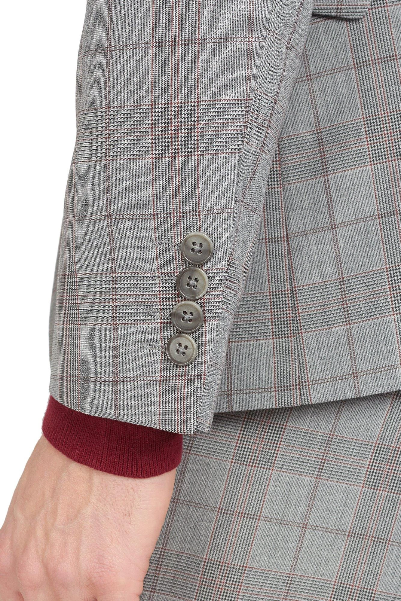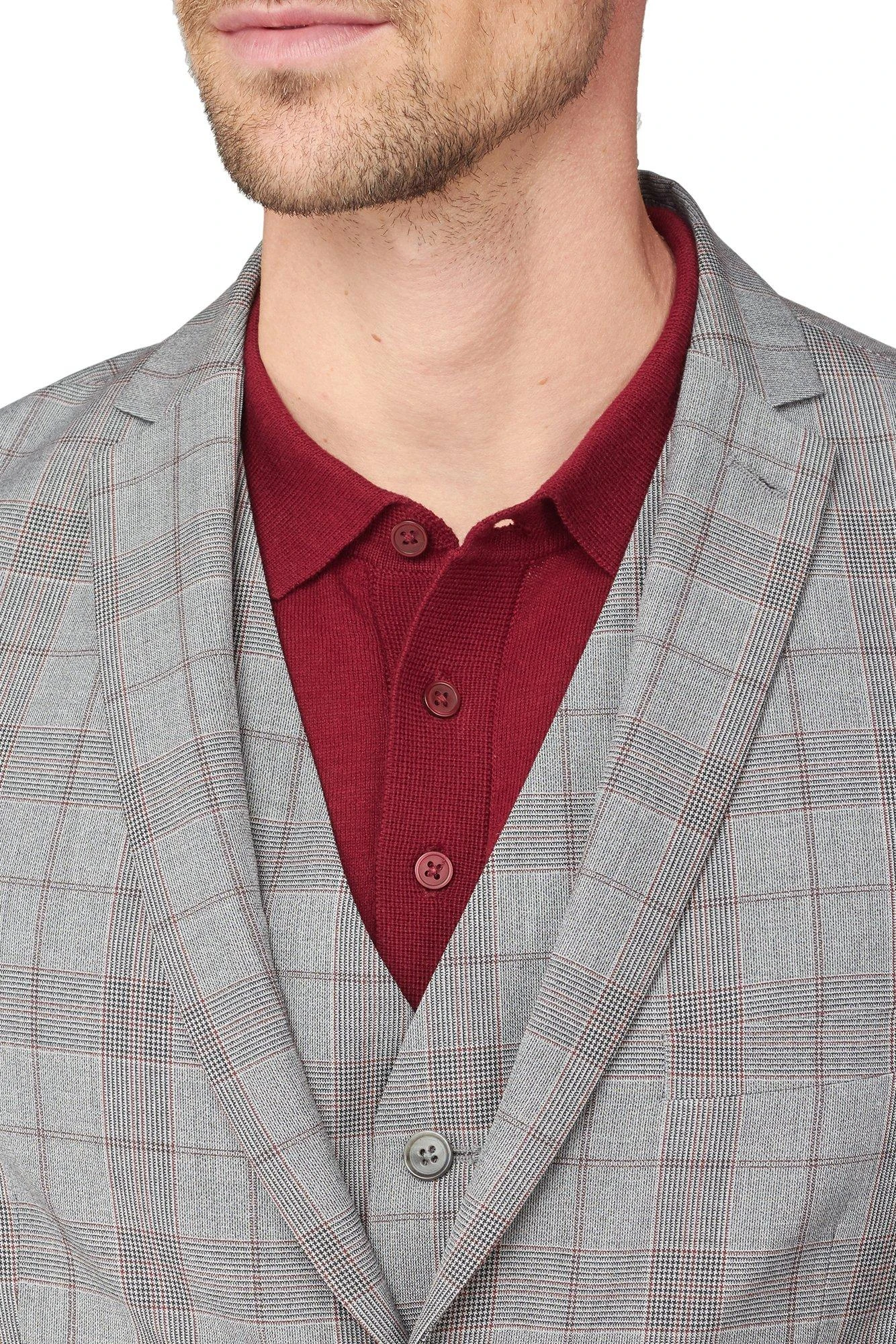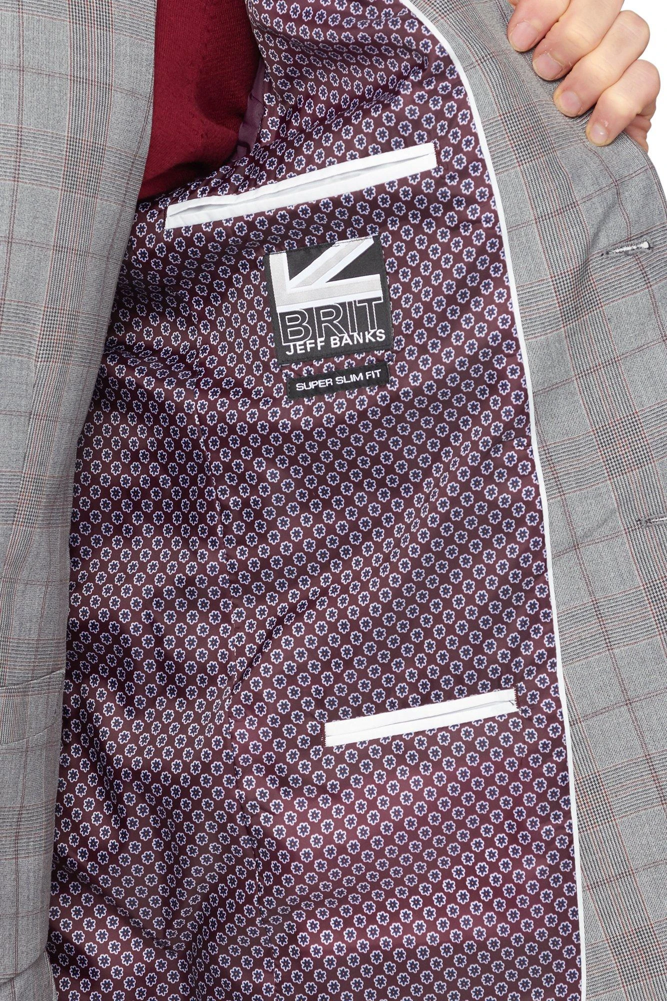 Update your formalwear collection with the ‘Grey with Red Check Super Slim Fit Brit Suit Jacket’ from Jeff Banks. The jacket is styled with a 2-button fastening, notch lapel and 4 button cuffs. This contemporary jacket is a transitional piece that will take you from wedding to weekend. Wear smart with matching trousers and waistcoat, or casual with grey t-shirt and trainers.