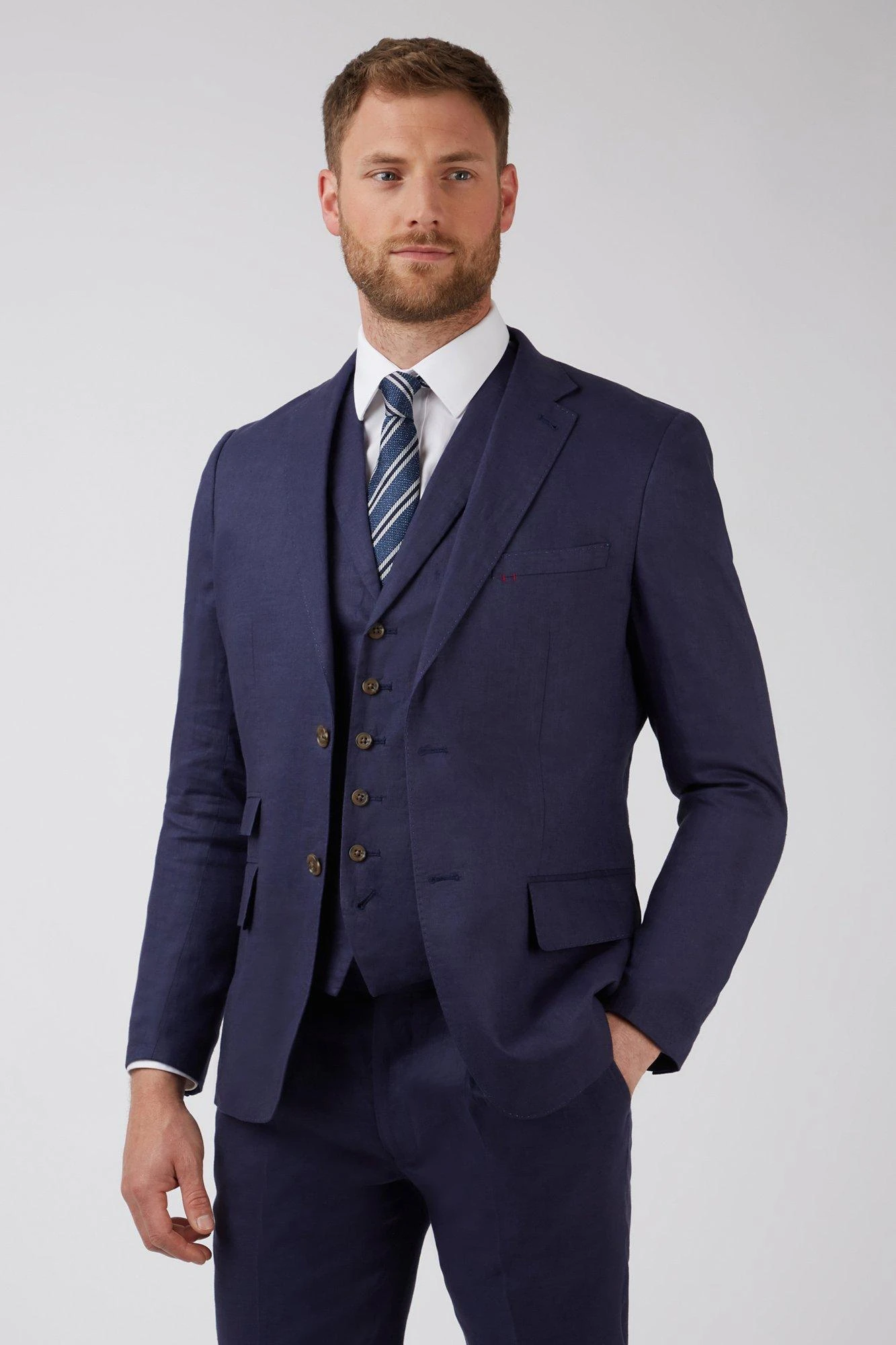 Linen Waistcoat by Jeff Banks. Sharpen up your formalwear with Jeff Banks this season, the epitome of the quintessential English gentleman. Designed for any occasion, this lightweight, breathable 100% linen suit is the perfect summer piece.