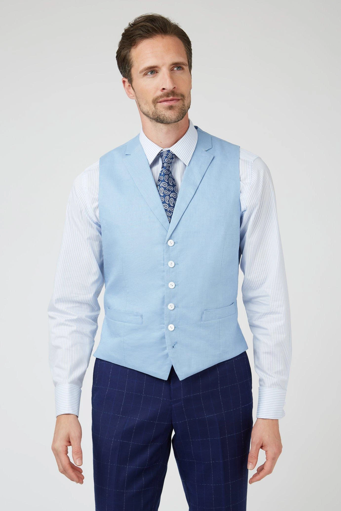 Linen Waistcoat by Jeff Banks. This 100% linen waistcoat by Jeff Banks is a wardrobe staple. Designed for maximum breathabiliy, with a lightweight feel, this waistcoat is perfect for mix and matching with your summer wardrobe.