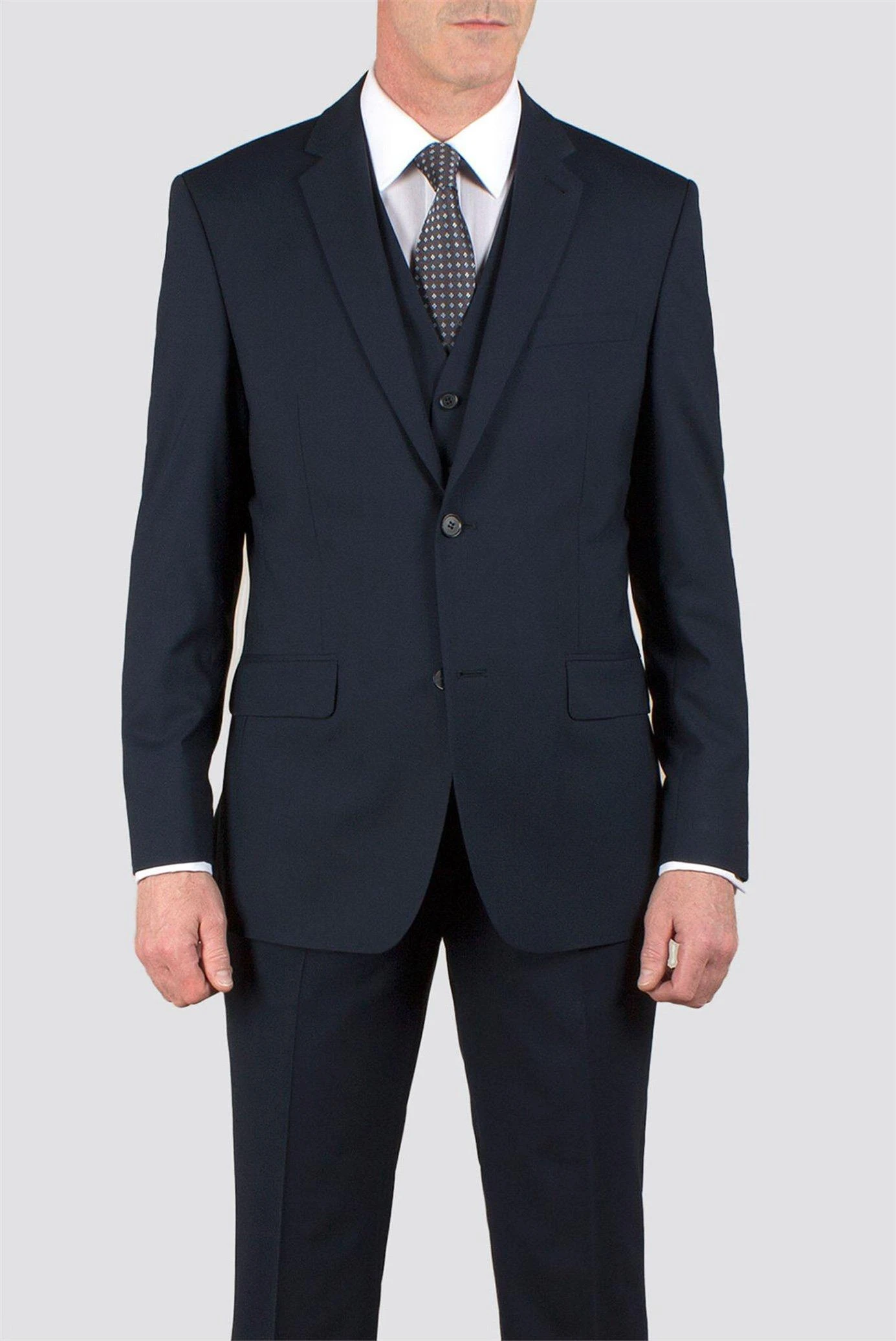 Travel Suit Jacket by Jeff Banks. The Jeff Banks Black Label Travel suit collection is aimed at the average man with a leaning towards traditional tailoring and shaping. The shoulders are cut quite square and the waist, chest and seat measurement are slightly relaxed for a regular fit. This suit has been engineered to combine the highest performance in fabric and garment construction. The fabric has been finished using nano technology which gives soil and water repellency so you can look great and stay comfortable all day long.