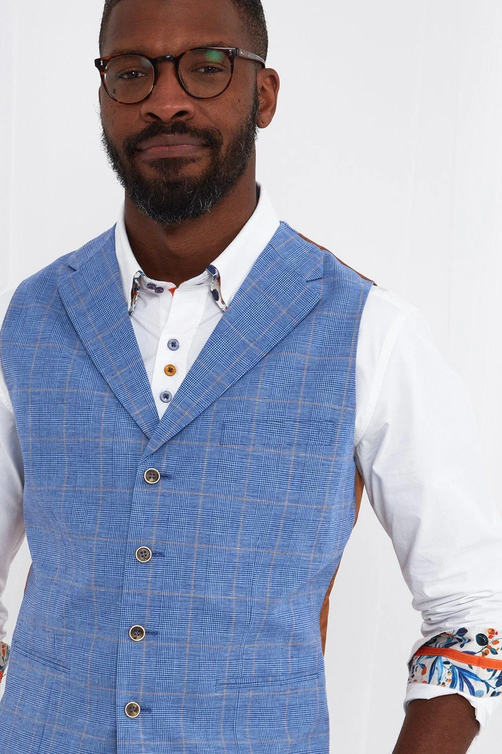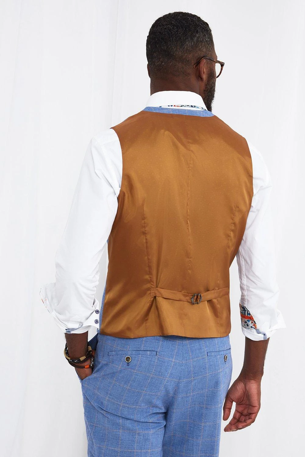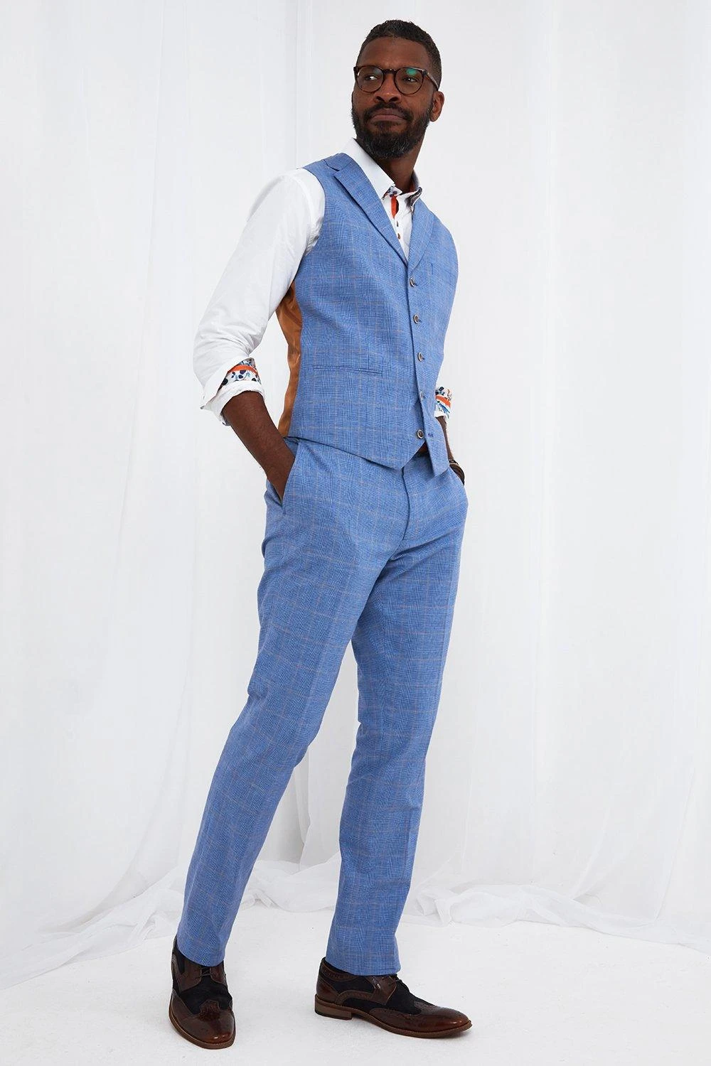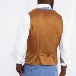 So suave and sophisticated, we made this waistcoat with style in mind. Combining versatile shades of blue with beige checks and a brown suede back, it’s nothing short of sensational. Whether you wear it alone or as part of the full suit, it’ll bring a fresh touch to your summer occasion looks.