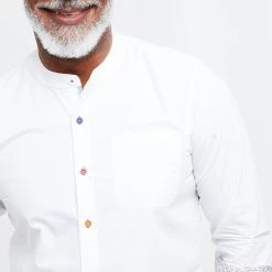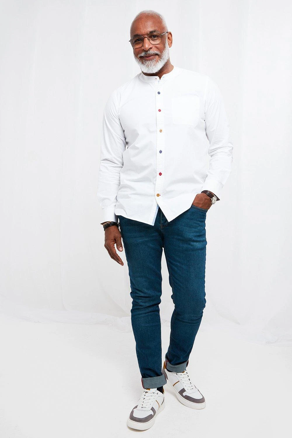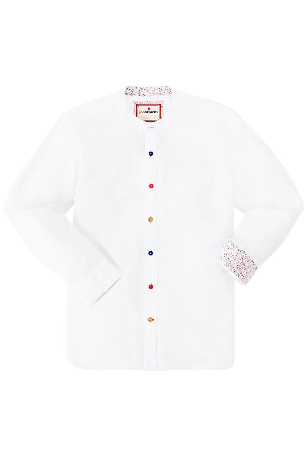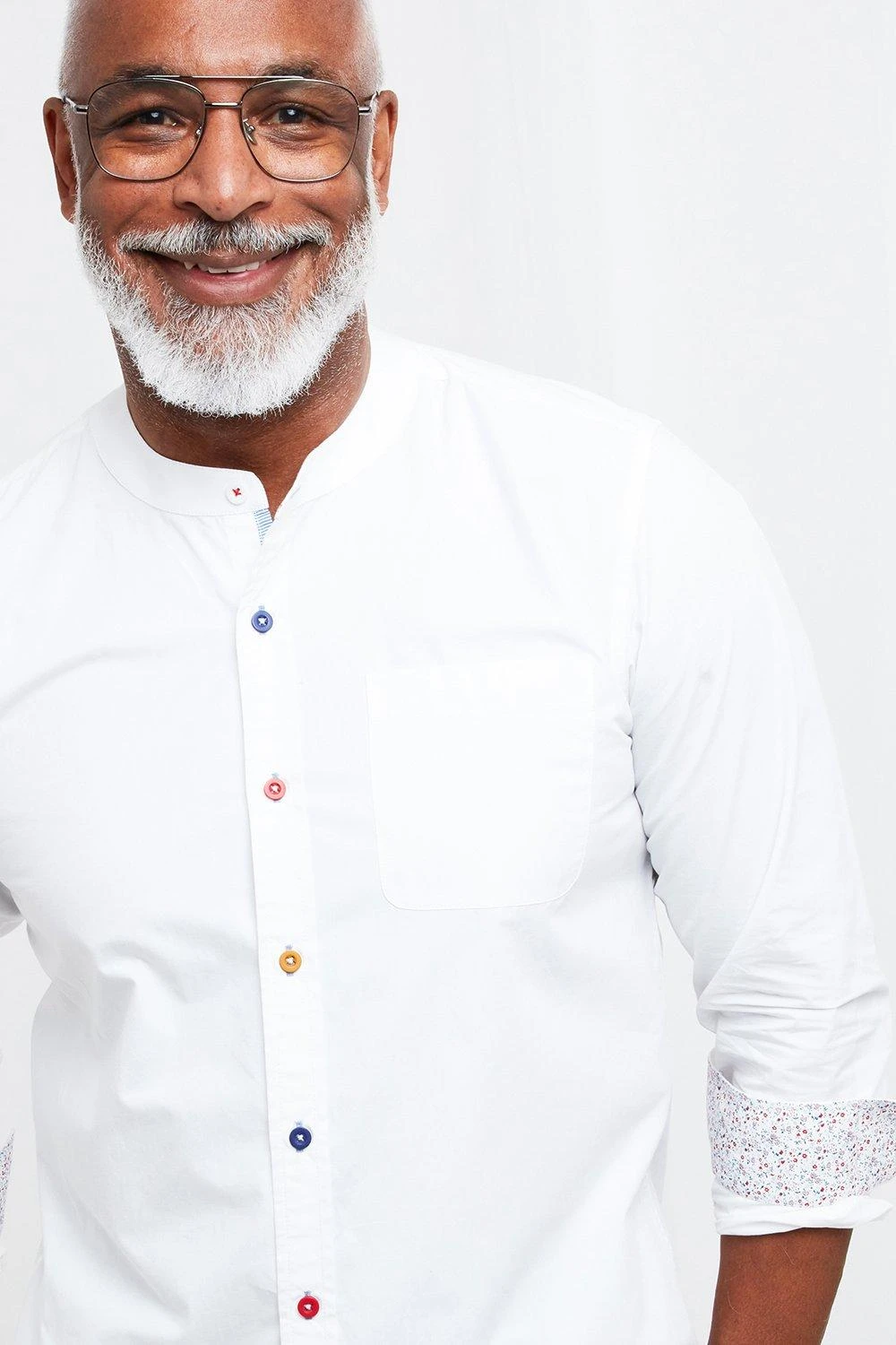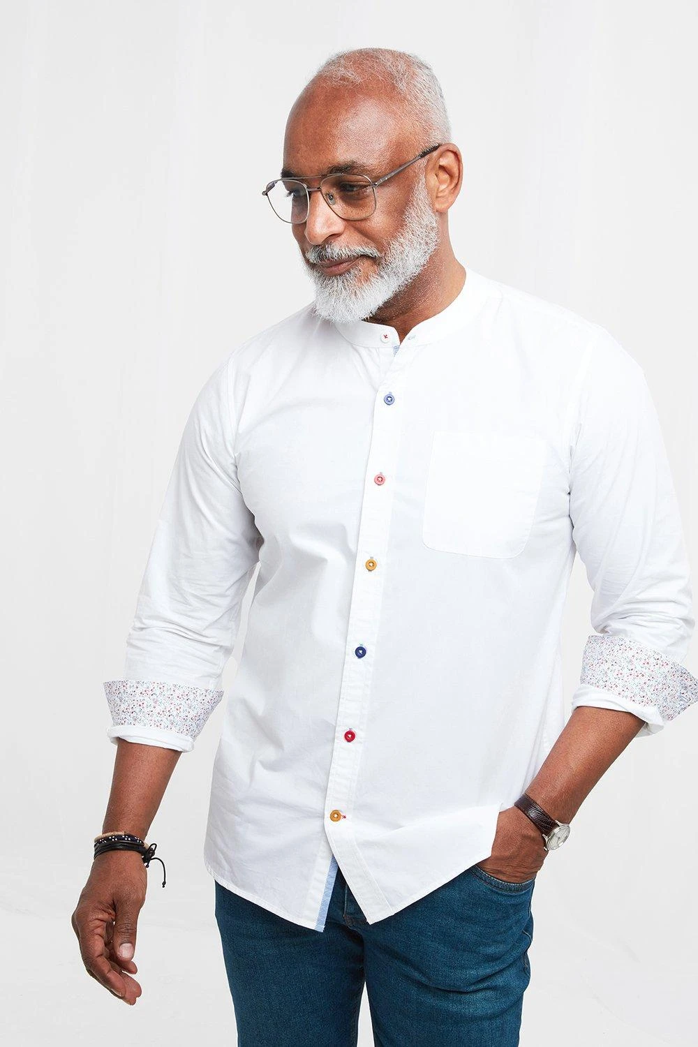 Simple in style but loaded with personality, this long-sleeve shirt is essential for summer occasions. It’s the mixed buttons, grandad collar and floral trim in the cuffs that add the real impact here. Whether you dress it up or down, this is one dapper shirt you’ll keep coming back to this season.