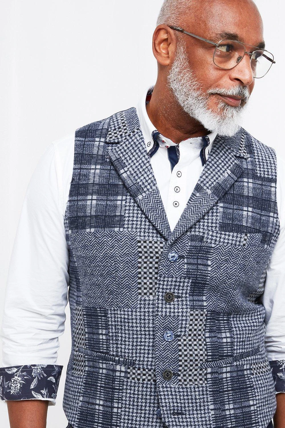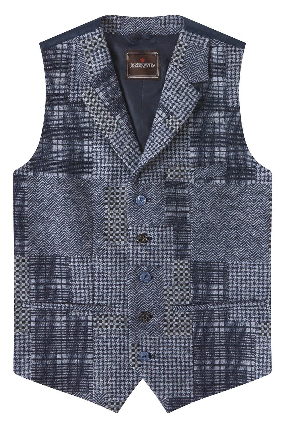 This snazzy waistcoat is totally unique. We weaved our jacquard fabric to make it look like different checks patchworked together, then added brilliant pops of blue and playful mixed buttons. This head-turning style will make a real statement on its own, or it’ll go great with one of our dapper blazers.