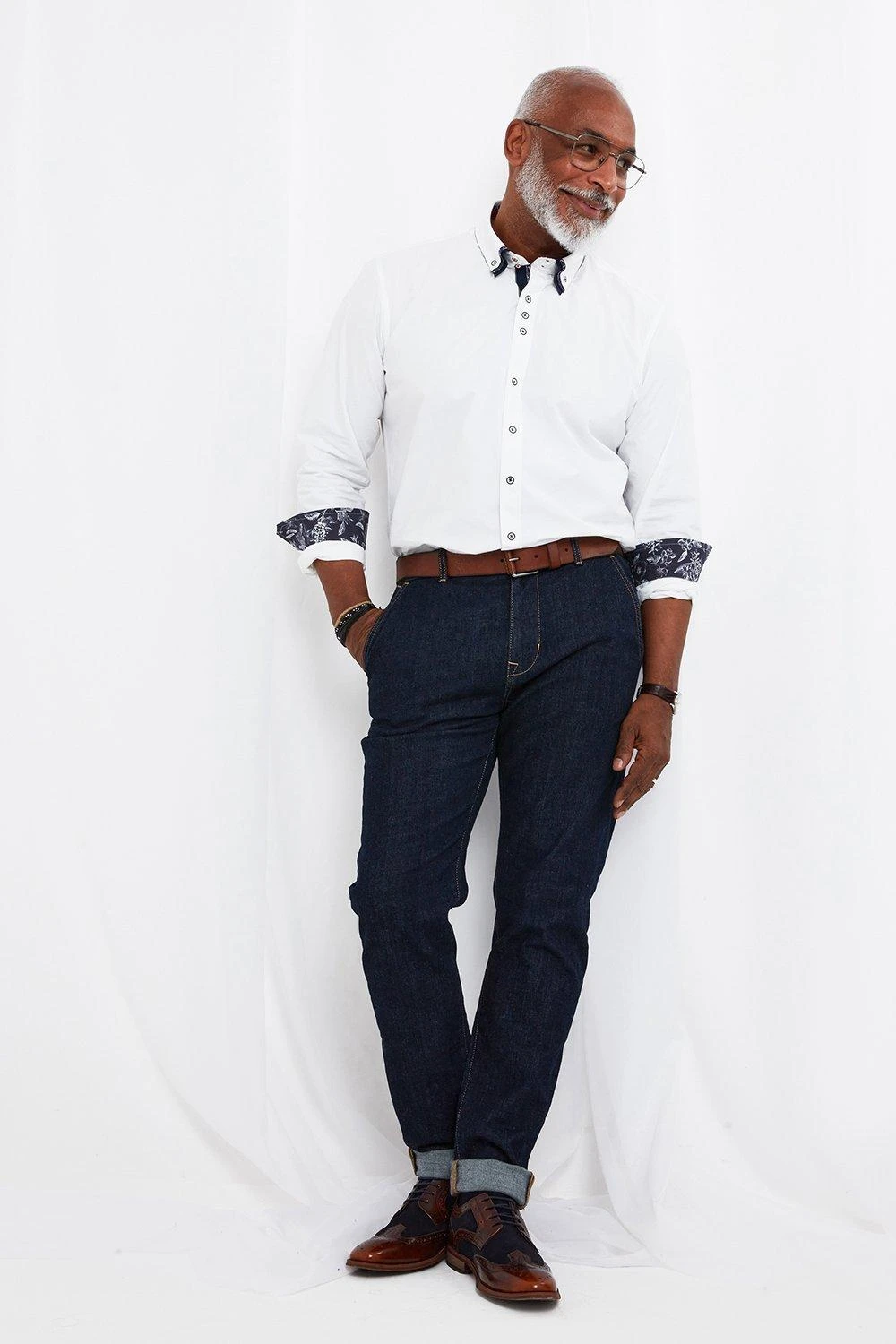 With triple the collars, you get triple the style in this sharp, long-sleeved shirt. The white upper collar is set off perfectly by the printed middle and navy bottom one, creating a shirt unlike any other. For a sophisticated look with a Joe Browns touch, just jazz it up with black jeans and one of our leather jackets.